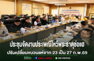 จ.แพร่ประชุมเตรียมความพร้อมจัดงานประเพณีไหว้พระธาตุช่อแฮ เมืองแพร่แห่ตุงหลวง มีขึ้นในวันที่ 22 ก.พ.- 3 มี.ค.69และปรับเปลี่ยนขบวนแห่จากวันที่23เป็น27ก.พ.69