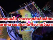 (มีคลิป)ฝนตกถนนลื่นบรรทุกสิบล้อเสียหลักชนเกาะกลางถนนสายเด่นชัย-ลำปางคนขับบาดเจ็บสาหัส