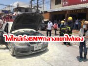 (มีคลิป) ระทึกไฟไหม้เก๋ง BMW กลางสี่แยก เดชะบุญจอดติดไฟแดงคนข้างทางเห็นจึงตระโกนบอกคนขับหนีออกมาทัน