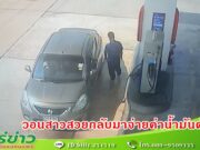(มีคลิป) วงจรปิดจับภาพสาวสวยเติมน้ำมันก่อนชิงหนีเด็กปั้มวิ่งตามไปเรียกไม่จอด
