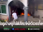 (มีคลิป)หม้อแปลงไฟระเบิดสักครู่บ้านหรูตรงข้ามไฟปริศนาไหม้ประตูบ้านตามมาติดหวิดวอดทั้งหลัง