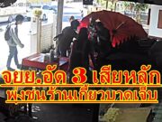 (มีคลิป) รถจยย.ยางอ่อน ซ้อนสามเข้าโค้งเสียหลักพุ่งชนร้านเกี้ยวแห่ระเบิดข้างวัดร่องซ้อเดชะบุญไม่ถึงกับเจ็บหนัก