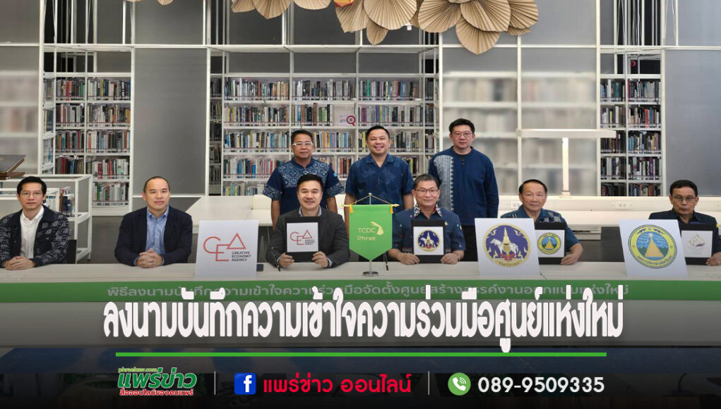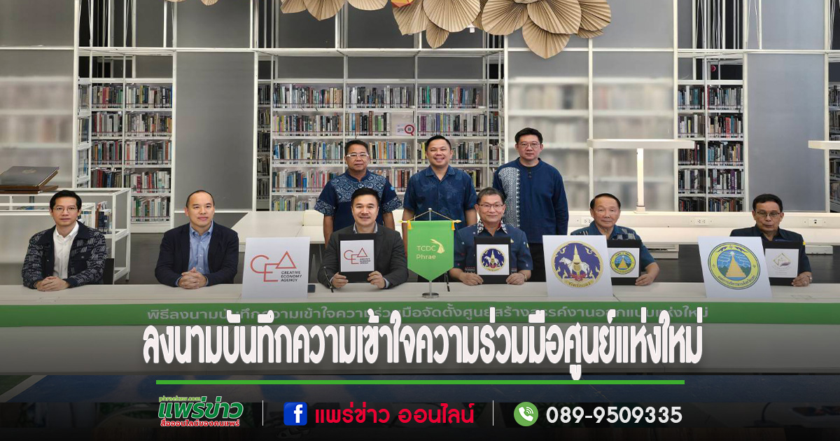 วันที่ 26 มิถุนายน 2567 เวลา 8.30 น. นายชุติเดช มีจันทร์ ผู้ว่าราชการจังหวัดแพร่ นายอนุวัธ วงศ์วรรณ และนายประทีป บินชัย ผู้อำนวยการวิทยาลัยชุมชนแพร่ ร่วมพิธีลงนามบันทึกความเข้าใจความร่วมมือเรื่องโครงการจัดตั้งศูนย์สร้างสรรค์งานออกแบบแห่งใหม่ (NEW TCDC) ณ สำนักงานส่งเสริมเศรษฐกิจสร้างสรรค์ (องค์การมหาชน) อาคารไปรษณีย์กลาง ถนนเจริญกรุง เขตบางรัก กรุงเทพมหานคร