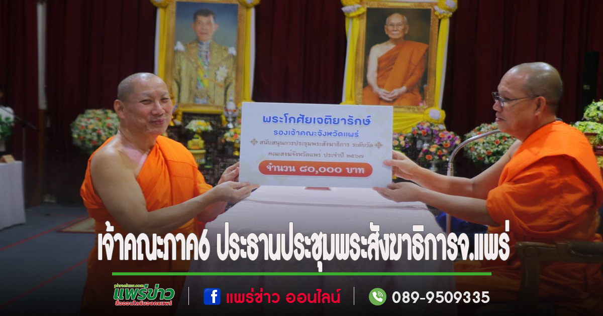 วันที่ 26 มิ.ย.67 พระเดชพระคุณพระเทพเวที เจ้าคณะภาค 6 เป็นประธานเปิดประชุมพระสังฆาธิการระดับวัด เจ้าอาวาส รองเจ้าอาวาส ผู้ช่วยเจ้าอาวาส เจ้าสำนักสงฆ์และประธานที่พักสงฆ์ ประจำปี 2567 จังหวัดแพร่ ภาค 6 ณ พุทธสถานวัดพระบาทมิ่งเมืองวรวิหาร จังหวัดแพร่ ในการนี้ มีพระอุดมบัณฑิต รักษาการเจ้าคณะภาค 6 พระราชเขมากร เจ้าคณะจ.แพร่ พระโกศัยเจติยารักษ์ รองเจ้าคณะจ.แพร่ และพระสังฆาธิการจังหวัดแพร่ เข้าร่วมประชุม