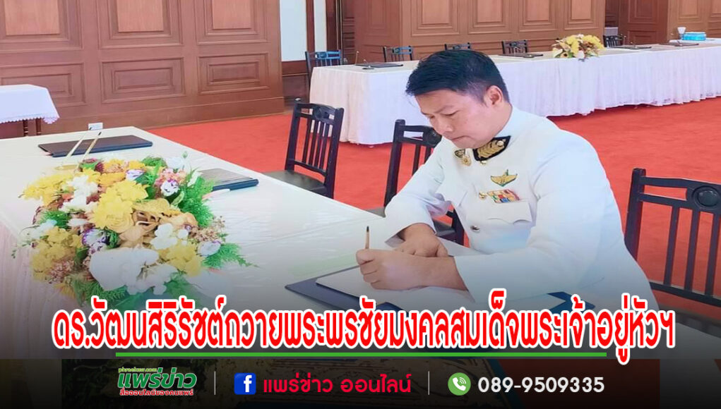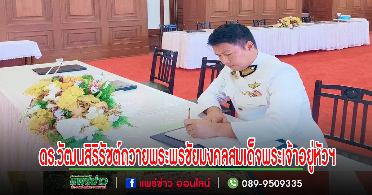 วันจันทร์ที่ 29 กรกฎาคม 2567 เวลา 09.00 น. ดร. วัฒนสิริรัชต์ กันตญาณมุนี ป.หัวหน้าคณะทำงานในหม่อมราชวงศ์ปณิธานจรูญโรจน์ รองประธานสภาอุตสาหกรรมท่องเที่ยวจังหวัดแพร่ เทวสถานพระพิฆเนศสำนักเทพจันทรคุปต์พระพิฆเนศแพร่พระพิฆเนศเนื้อเงินยวงใหญ่ที่สุดในประเทศไทย สมาคมธุรกิจท่องเที่ยวชุมชนจังหวัดแพร่ คณะผู้บริหารองค์กรร่วมลงนามถวายพระพรชัยมงคลแด่พระบาทสมเด็จพระเจ้าอยู่หัว เนื่องในโอกาสพระราชพิธีมหามงคลเฉลิมพระชนมพรรษา 6 รอบ 28 กรกฎาคม 2567 ณ ศาลาสหทัยสมาคม ในพระบรมมหาราชวัง