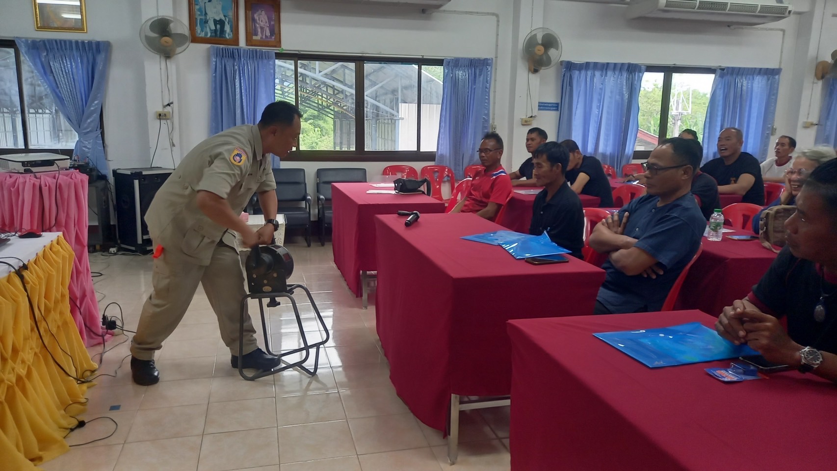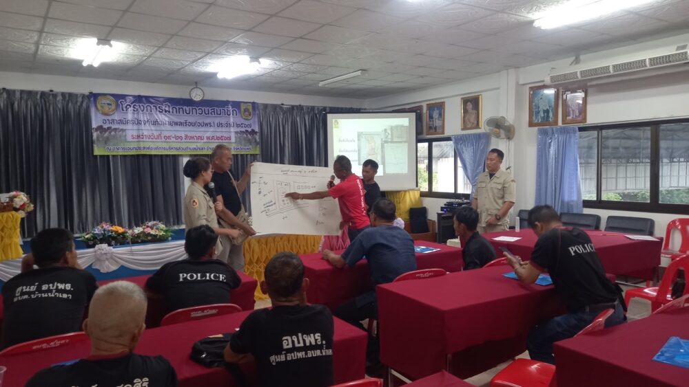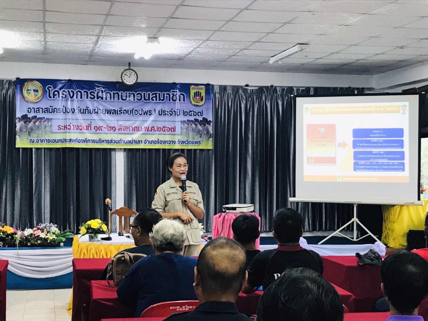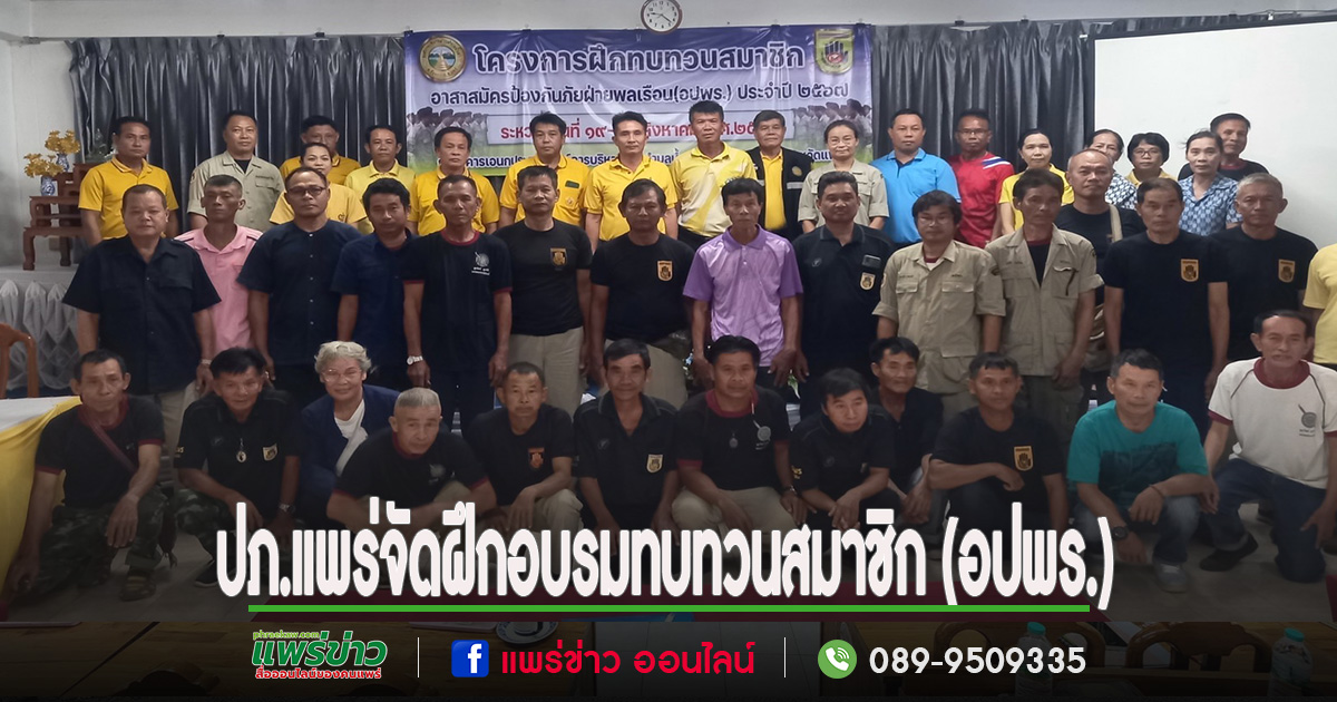 วันที่ 19 สิงหาคม 2567 นางสาวรำพู จันต๊ะปะตุ หัวหน้าสำนักงานป้องกันและบรรเทาสาธารณภัยจังหวัดแพร่ มอบหมายให้ นางสาวธัญจิรา จันต๊ะปะตุ หัวหน้าฝ่ายป้องกันและปฏิบัติการ พร้อมเจ้าหน้าที่ฝ่ายป้องกันฯ เป็นวิทยากร โครงการฝึกอบรมทบทวนสมาชิกอาสาสมัครป้องกันภัยฝ่ายพลเรือน (อปพร.) ประจำปี 2567 ของศูนย์ อปพร. องค์การบริหารส่วนตำบลน้ำเลา มีสมาชิก อปพร. เข้าอบรม จำนวน 35 คน โดยมีนายสิทธิเดช กันหมุด นายกองค์การบริหารส่วนตำบลน้ำเลา / ผู้อำนวยการศูนย์ อปพร. องค์การบริหารส่วนตำบลน้ำเลา เป็นประธาน