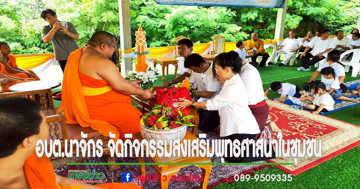 วันพุธที่ 9 กรกฎาคม 2568 องค์การบริหารส่วนตำบลนาจักร อำเภอเมืองแพร่ จังหวัดแพร่ นำโดย นายสุนนท์ จิตใจ นายกองค์การบริหารส่วนตำบลนาจักร พร้อมด้วยคณะผู้บริหาร พนักงานส่วนตำบล และพนักงานจ้าง ร่วมจัดกิจกรรมส่งเสริมวันสำคัญทางพระพุทธศาสนา เนื่องในวันอาสาฬหบูชาและวันเข้าพรรษา ประจำปี 2568