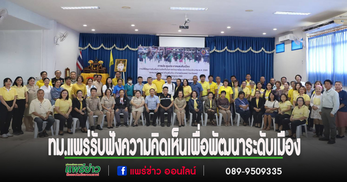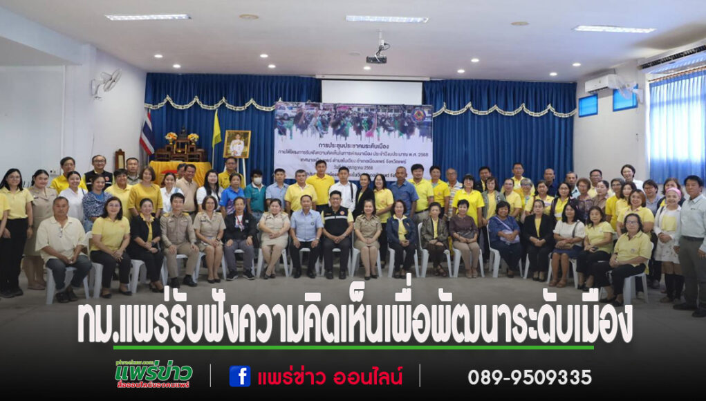 วันที่ 21 กรกฎาคม 2568 เวลา 09.30 น.นายสน ลือวัฒนานนท์ รองนายกเทศมนตรีเมืองแพร่ ให้เกียรติเป็นประธานการประชุมประชาคมระดับเมือง ภายใต้โครงการรับฟังความคิดเห็นในการพัฒนาเมือง ประจำปีงบประมาณ พ.ศ. 2568 ณ หอประชุมอำเภอเมืองแพร่ โดยมีผู้แทนชุมชน ภาคประชาสังคม หน่วยงานภาครัฐและเอกชน รวมถึงประชาชนทั่วไปที่ให้ความสนใจเข้าร่วม