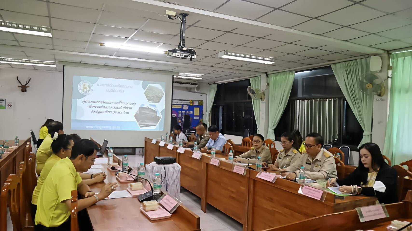 วันจันทร์ที่ 4 สิงหาคม 2568 เวลา 10.00 น. นายพิพัฒน์ ซื่อทรงธรรม นายกเทศมนตรีตำบลร้องกวาง มอบหมายให้ นายอัศวิน วรรณจรรยา รองนายกเทศมนตรีตำบลร้องกวาง เป็นประธานการประชุมโครงการเสริมสร้างเยาวชนเพื่อการพัฒนา หน่วยสันติภาพสหรัฐอเมริกา ประเทศไทย รุ่นที่ 137 เพื่อร่วมพัฒนาเด็กและเยาวชนในพื้นที่เทศบาลตำบลร้องกวาง ให้มีทักษะด้านภาษาอังกฤษเพิ่มสูงขึ้น โดยมีตัวแทนจากโรงเรียนในเขตพื้นที่เทศบาลตำบลร้องกวาง สถานีตำรวจภูธรร้องกวาง และโรงพยาบาลส่งเสริมสุขภาพตำบลร้องกวางเข้าร่วมการประชุม