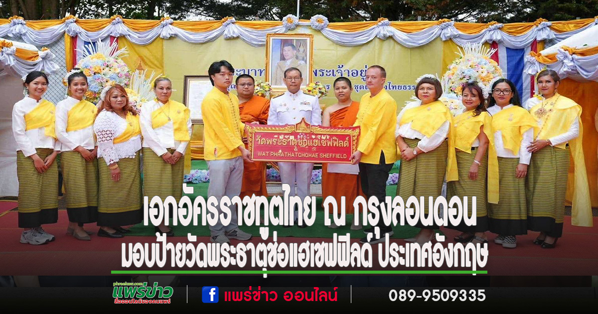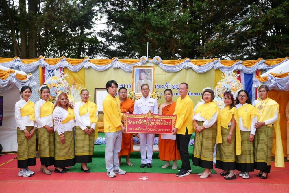 ในโอกาสนี้ นายณัฐวัฒน์ กฤษณามระเอกอัครราชทูตไทย ณ กรุงลอนดอน พร้อมด้วยภริยา นายจารุภูมิ เรืองสุวรรณ อัครราชทูตที่ปรึกษา พร้อมภริยา เป็นประธานมอบป้ายวัดพระธาตุช่อแฮเชฟฟิลด์ เมืองเชฟฟิลด์ ประเทศอังกฤษ