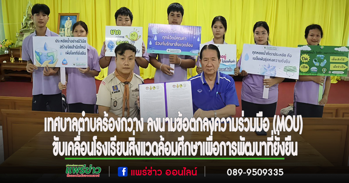 วันพุธที่ 6 สิงหาคม 2568 เวลา 14.00 น. นายพิพัฒน์ ซื่อทรงธรรม นายกเทศมนตรีตำบลร้องกวาง เป็นตัวแทนฝ่ายเทศบาลตำบลร้องกวาง และนายศิวกร สุริยะ รองผู้อำนวยการโรงเรียนร้องกวางอนุสรณ์ ตัวแทนฝ่ายโรงเรียนร้องกวางอนุสรณ์ ร่วมลงนามข้อตกลงความร่วมมือ (MOU) การขับเคลื่อนโรงเรียนสิ่งแวดล้อมศึกษาเพื่อการพัฒนาที่ยั่งยืน ระหว่างโรงเรียนร้องกวางอนุสรณ์ และเทศบาลตำบลร้องกวาง