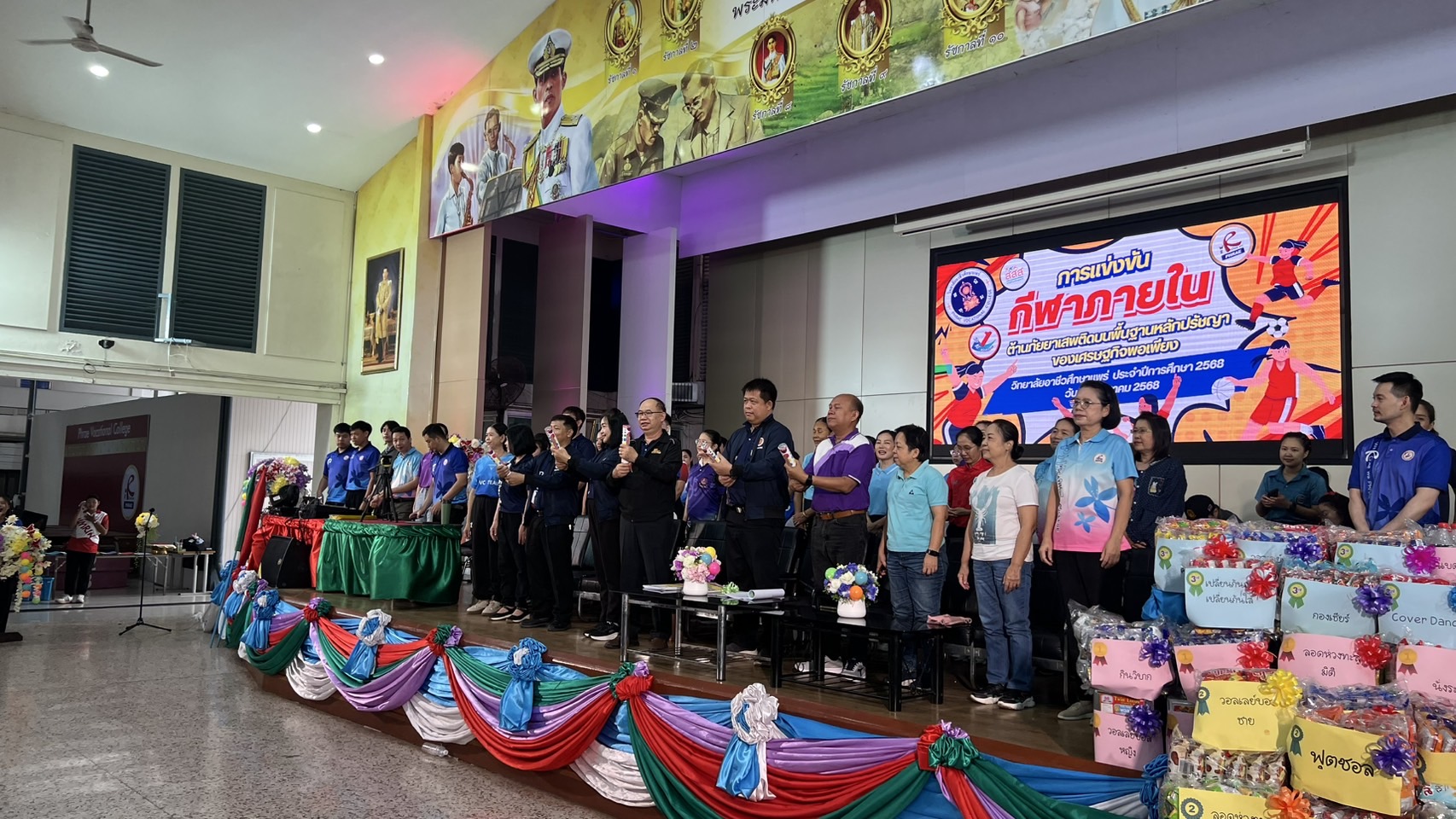 นางสาวกิจฤทัยฯ กล่าวรายงานว่า การจัดการแข่งขันกีฬาสีภายใน ต้านภัยยาเสพติด บนพื้นฐานหลักปรัชญาของเศรษฐกิจพอเพียง ประจำปีการศึกษา 2568 ได้มีการแข่งขัน ทั้งหมด 10 ประเภทดังนี้ การแข่งขันขบวนพาเหรด การแข่งขันกองเชียร์ การแข่งขันเชียร์หลีดเดอร์ การแข่งขัน Cover Dance การแข่งขัน Dancer การแข่งขันวาดภาพป้ายคัทเอาท์ยอดเยี่ยม การแข่งขันกีฬาวอลเล่ย์บอล ประเภท(ทีมหญิง และ ทีมชาย) การแข่งขันกีฬาฟุตซอล ประเภท(ทีมหญิง และ ทีมชาย) การแข่งขันกีฬาแบดมินตัน ประเภท ชายคู่ หญิงคู่ และ ประเภทคู่ผสม และการแข่งขันกีฬาพื้นบ้านมหาสนุก โดยมีวัตถุประสงค์ของการจัดการแข่งขันเพื่อให้นักเรียน นักศึกษามีส่วนร่วมในการจัดกิจกรรมที่วิทยาลัยฯ จัดขึ้น เพื่อให้นักเรียน นักศึกษาได้แสดงออกถึงความสามารถของตนเอง เพื่อให้นักเรียน นักศึกษา มีสุขภาพพลานามัยแข็งแรงสมบูรณ์ เพื่อเป็นการผ่อนคลายความตึงเครียดจากการเรียน เพื่อแสดงออกถึงความสามัคคีในหมู่คณะ และการสร้างสัมพันธไมตรีที่ดีระหว่างรุ่นพี่และรุ่นน้อง