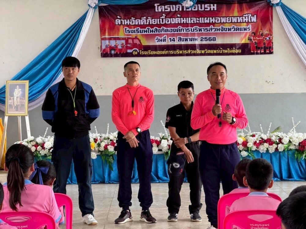 ซึ่งเป็นโครงการอบรมด้านอัคคีภัยเบื้องต้นและอพยพหนีไฟ โรงเรียนในสังกัดองค์การบริหารส่วนจังหวัดแพร่ จัดขึ้น ณ อาคารยอดไผ่และโดมอเนกประสงค์ รร.อบจ.แพร่ บ้านไผ่ย้อย ตำบลน้ำเลา อำเภอร้องกวาง จังหวัดแพร่