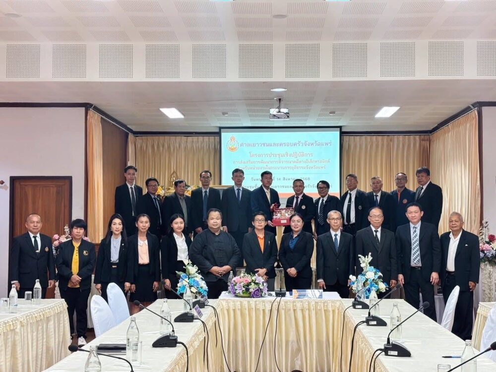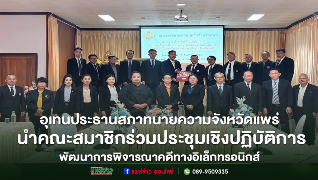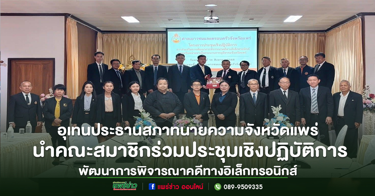 วันที่ 14 สิงหาคม 2568 เวลา 13.30 – 16.00 น. ณ ห้องประชุมชั้น 3 ศาลเยาวชนและครอบครัวจังหวัดแพร่ นายอุเทน สุขทั่วญาติ ประธานสภาทนายความจังหวัดแพร่ พร้อมด้วยตัวแทนที่ปรึกษากฎหมายศาลเยาวชนและครอบครัวจังหวัดแพร่ และทนายความในพื้นที่ เข้าร่วมโครงการประชุมเชิงปฏิบัติการ “การส่งเสริมการพัฒนาการพิจารณาคดีทางอิเล็กทรอนิกส์สำหรับหน่วยงานในกระบวนการยุติธรรมจังหวัดแพร่”