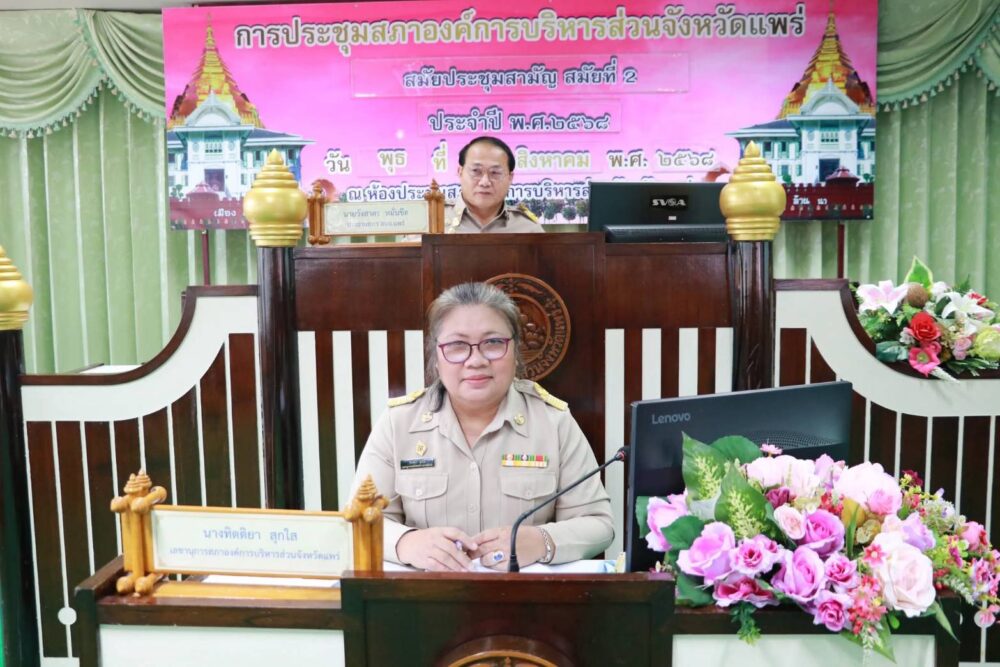 ในการนี้ นายอนุวัธ วงศ์วรรณ นายกองค์การบริหารส่วนจังหวัดแพร่ พร้อมด้วยคณะผู้บริหาร หัวหน้าส่วนราชการ และสมาชิกสภาองค์การบริหารส่วนจังหวัดแพร่ ได้เข้าร่วมประชุมอย่างพร้อมเพรียง เพื่อร่วมกันพิจารณาข้อราชการและแนวทางการพัฒนาจังหวัดแพร่