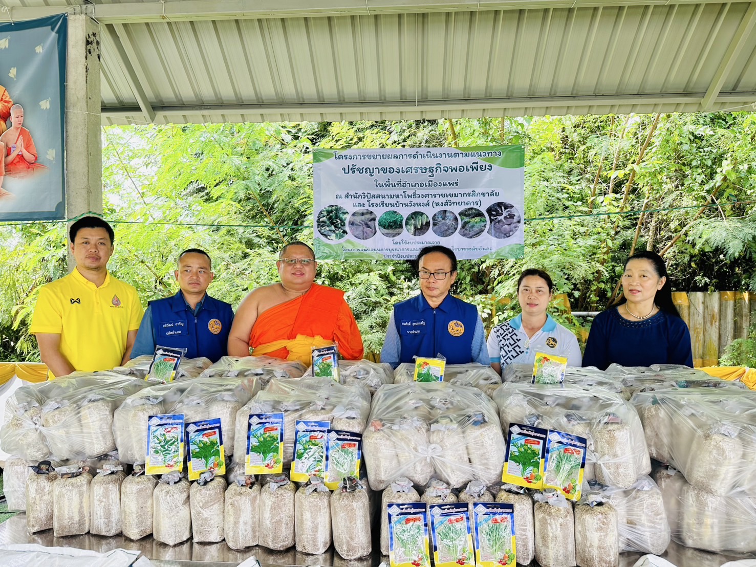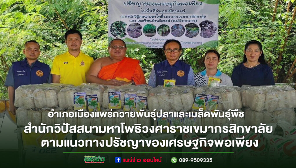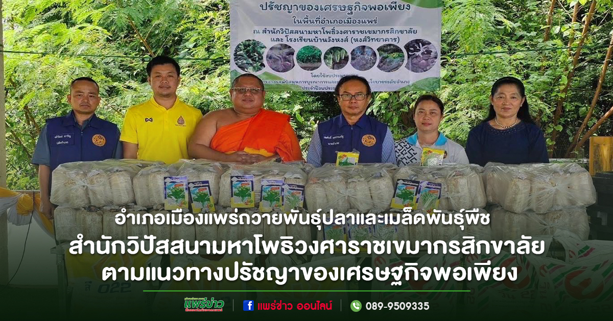 เมื่อวันที่ 14 สิงหาคม 2568 นายสมศักดิ์ สุขประเสริฐ นายอำเภอเมืองแพร่ เป็นประธานในพิธีถวายพันธุ์ปลา เมล็ดพันธุ์พืช วัสดุอุปกรณ์ทางการเกษตร และเห็ดนางฟ้าภูฐาน ตามโครงการขยายผลการดำเนินงานตามแนวทางปรัชญาของเศรษฐกิจพอเพียงในพื้นที่อำเภอเมืองแพร่