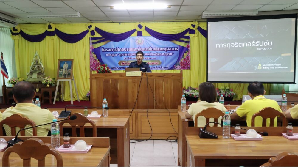 โครงการฝึกอบรมและพัฒนาศักยภาพบุคลากรหลักสูตร “คุณธรรม จริยธรรม และป้องกันการทุจริต” ประจำปีงบประมาณ พ.ศ. 2568 มีวัตถุประสงค์เพื่อส่งเสริมและสร้างจิตสำนึกที่ดีให้บุคลากรในสังกัดสามารถนำหลักคุณธรรม จริยธรรม มาปรับใช้ในการดำเนินชีวิตและการปฏิบัติงาน โดยปฏิบัติหน้าที่ด้วยความชื่อสัตย์ สุจริต เสียสละ และมีความรับผิดชอบต่อหน้าที่ที่ตนเองได้รับ คำนึงถึงประโยชน์สุขของประชาชนเป็นหลัก เสริมสร้างวินัย การรักษาวินัยของบุคลากรในสังกัด ในการปฏิบัติงานด้วยความโปร่งใส สามารถตรวจสอบได้ เพื่อป้องกันปัญหาการทุจริตในหน้าที่ เสริมสร้างให้การทำงานร่วมกันอย่างมีความสุข รู้จักการทำงานเป็นทีม มีทัศนคติที่ดีต่องาน ผู้บริหาร หัวหน้างานหน่วยงาน เพื่อนร่วมงาน และผู้มาใช้บริการ และปฏิบัติงานตามหลักธรรมาภิบาล