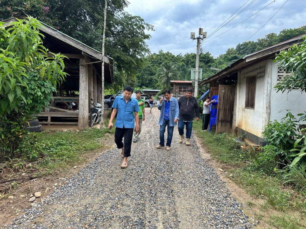 จากนั้น ขากลับได้แวะที่บ้านปากห้วยอ้อย หมู่ 5 ตำบลบ้านเวียง เพื่อตรวจพื้นที่น้ำท่วมที่ผ่านมา และมอบเงินสนับสนุนการปรับปรุงฌาปนสถานของชุมชน