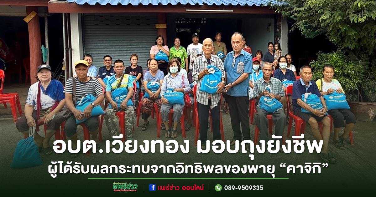 วันที่ 29 สิงหาคม 2568 เวลา 09.00 น. นายเสรี เวียงนาค นายกองค์การบริหารส่วนตำบลเวียงทอง มอบหมายให้ นายจำเริญ จินดาเสน รองนายกองค์การบริหารส่วนตําบลเวียงทอง ลงพื้นที่มอบถุงยังชีพ แก่ประชาชนหมู่ที่ 12 ที่ได้รับผลกระทบจากภาวะน้ำยมล้นตลิ่งและไหลเข้าท่วมบ้านเรือน จากอิทธิพลของพายุ “คาจิกิ” เพื่อบรรเทาความเดือดร้อนและเป็นขวัญกำลังใจแก่ประชาชน ณ หมู่ที่ 12 ตำบลเวียงทอง อำเภอสูงเม่น จังหวัดแพร่