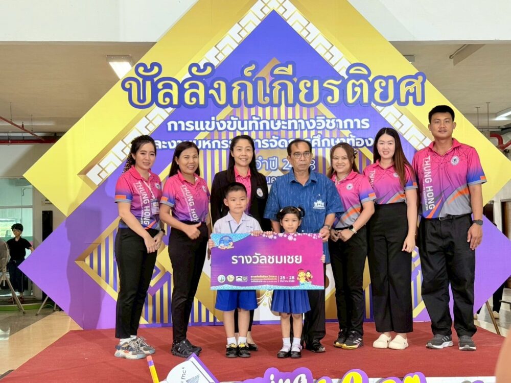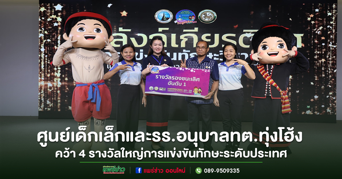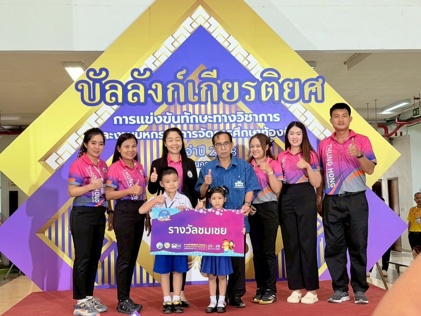 งานประชาสัมพันธ์เทศบาลตำบลทุ่งโฮ้งเปิดเผยว่า นายสราวุธ หมื่นโฮ้ง นายกเทศมนตรีตำบลทุ่งโฮ้ง พร้อมด้วยคณะผู้บริหาร ได้ร่วมแสดงความยินดีกับโรงเรียนอนุบาลเทศบาลตำบลทุ่งโฮ้ง และศูนย์พัฒนาเด็กเล็กเทศบาลตำบลทุ่งโฮ้ง ที่สามารถสร้างชื่อเสียงให้กับท้องถิ่น คว้ารางวัลรวม 4 รายการ จากการแข่งขันทักษะวิชาการและงานมหกรรมการจัดการศึกษาท้องถิ่นระดับประเทศ จัดขึ้นระหว่างวันที่ 25 – 28 สิงหาคม 2568