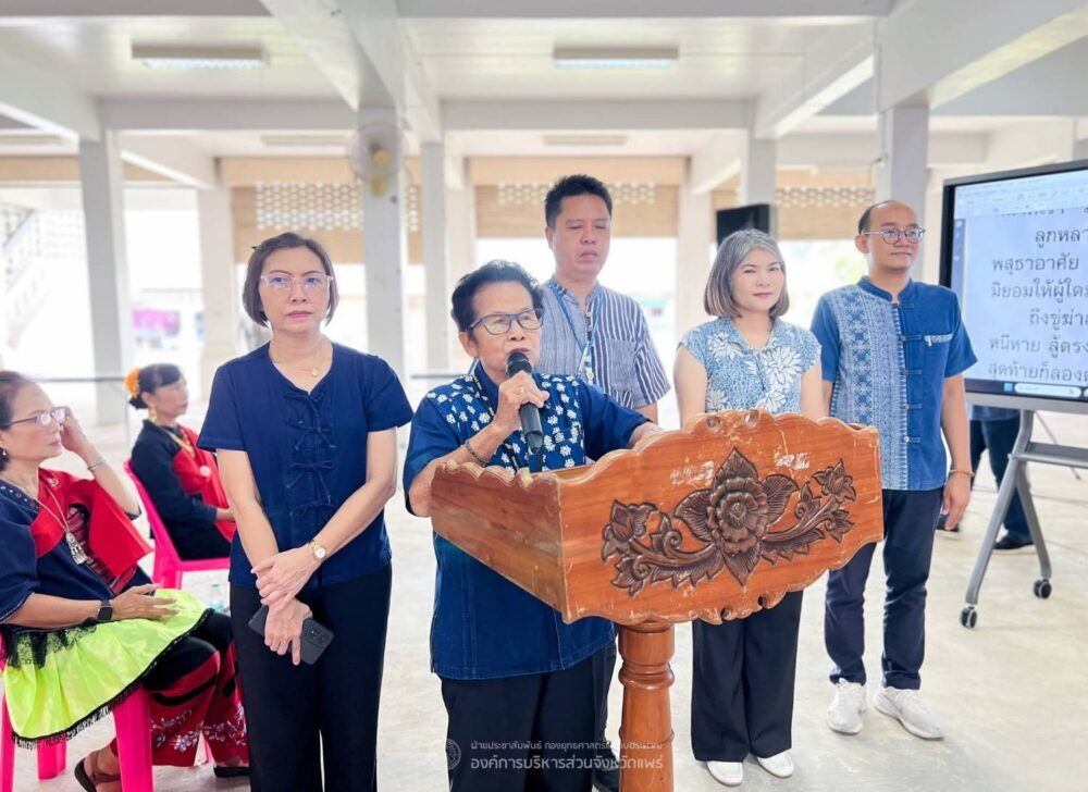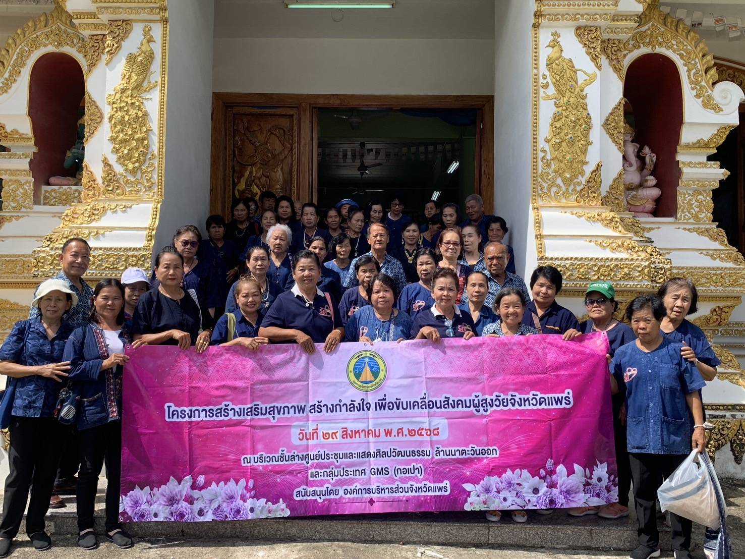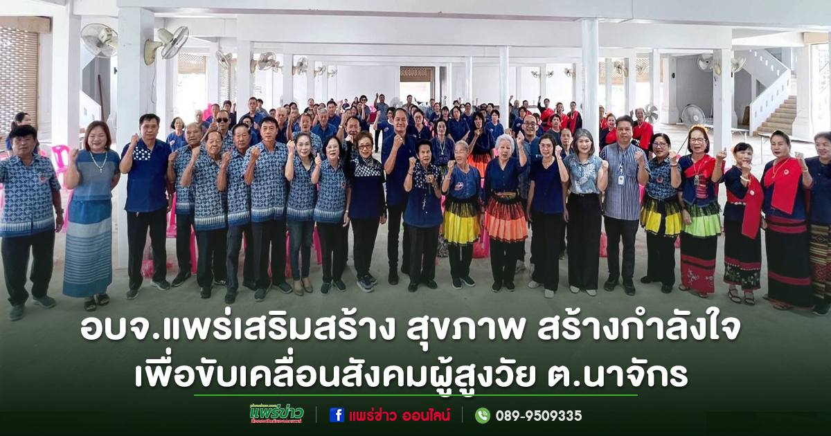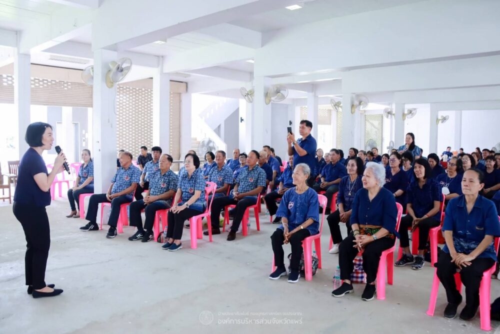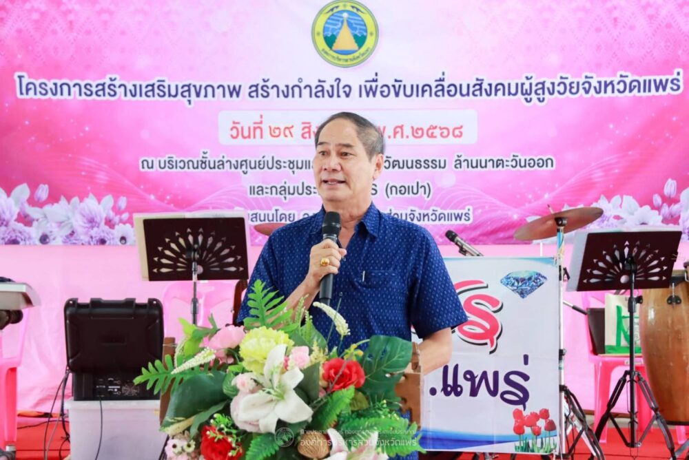 วันที่ 29 สิงหาคม 2568 นายอนุวัธ วงศ์วรรณ นายกองค์การบริหารส่วนจังหวัดแพร่ มอบหมายให้ นายพิภพ ถานะวุฒิพงศ์ รองนายกองค์การบริหารส่วนจังหวัดแพร่ เป็นประธานพิธีเปิดโครงการสร้างเสริมสุขภาพ สร้างกำลังใจ เพื่อขับเคลื่อนสังคมผู้สูงวัยจังหวัดแพร่ รุ่นที่ 6 ณ ศูนย์ประชุมและแสดงศิลปวัฒนธรรมล้านนาตะวันออกและกลุ่มประเทศ GMS ทั้งนี้ มีผู้สูงอายุจากตำบลนาจักร อำเภอเมืองแพร่ จำนวน 100 คน เข้าร่วมโครงการ
