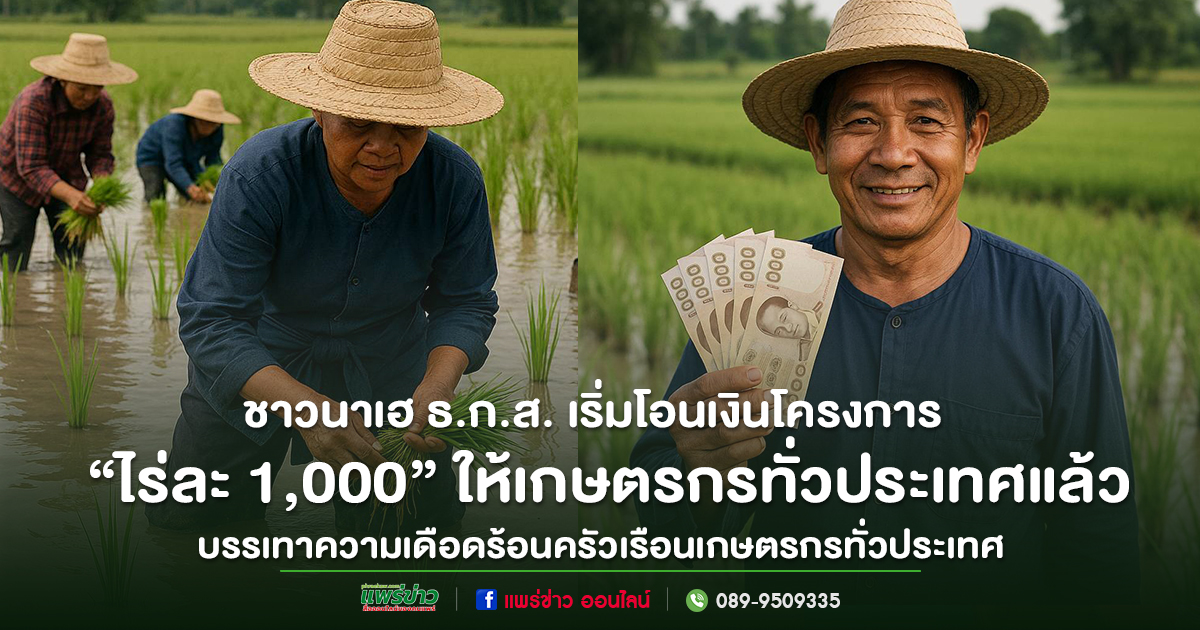 เมื่อวันที่ 1 กันยายน 2568 ธนาคารเพื่อการเกษตรและสหกรณ์การเกษตร (ธ.ก.ส.) ได้เริ่มโอนเงินช่วยเหลือเกษตรกรผู้ปลูกข้าวตามโครงการ “ไร่ละ 1,000” ซึ่งได้รับการสนับสนุนจากรัฐบาล โดยแบ่งการโอนตามภูมิภาคและโครงการ ดังนี้