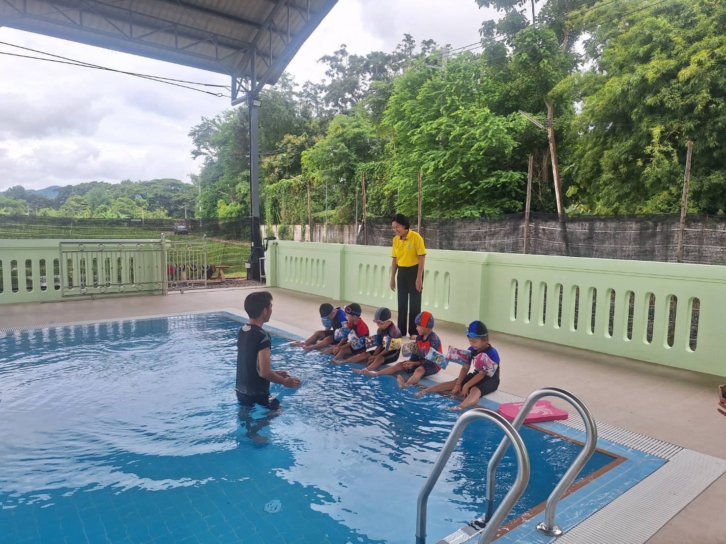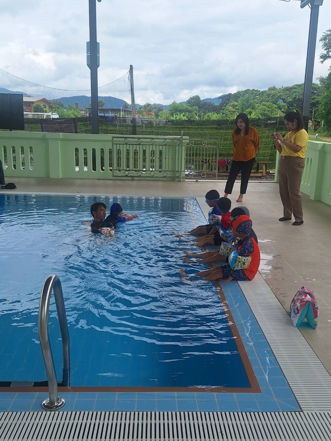 โดยมี คณะครู และเจ้าหน้าที่ ช่วยดูแลการสอนในครั้งนี้ด้วย ณ สระว่ายน้ำโรงเรียนอนุบาลองค์การบริหารส่วนตําบลเวียงทอง อำเภอสูงเม่น จังหวัดแพร่
