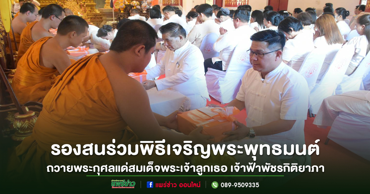 วันที่ 1 กันยายน 2568 เวลา 16.00 น. นายสน ลือวัฒนานนท์ รองนายกเทศมนตรีเมืองแพร่ ร่วมพิธีเจริญพระพุทธมนต์ ถวายพระกุศลแด่สมเด็จพระเจ้าลูกเธอ เจ้าฟ้าพัชรกิติยาภา นเรนทิราเทพยวดี กรมหลวงราชสาริณีสิริพัชร มหาวัชรราชธิดา