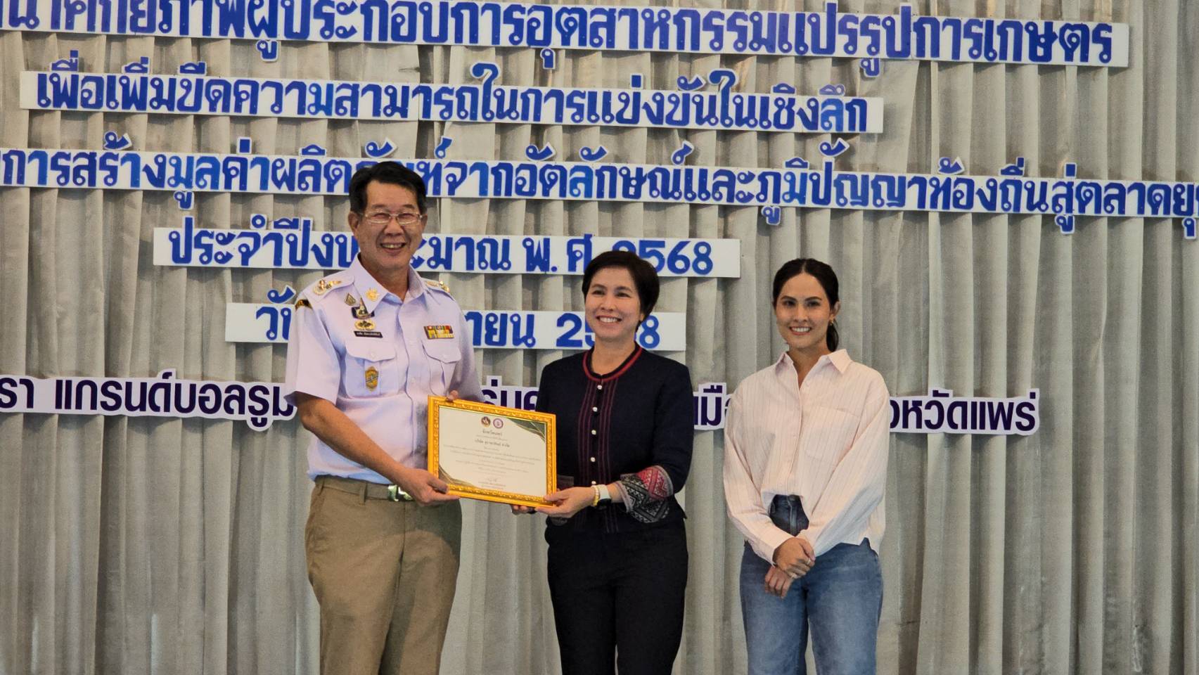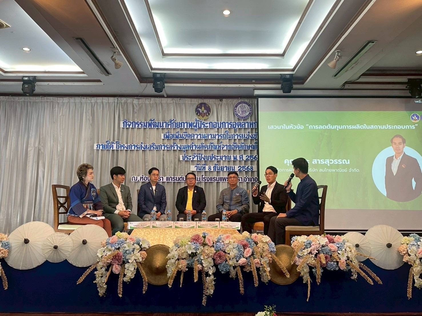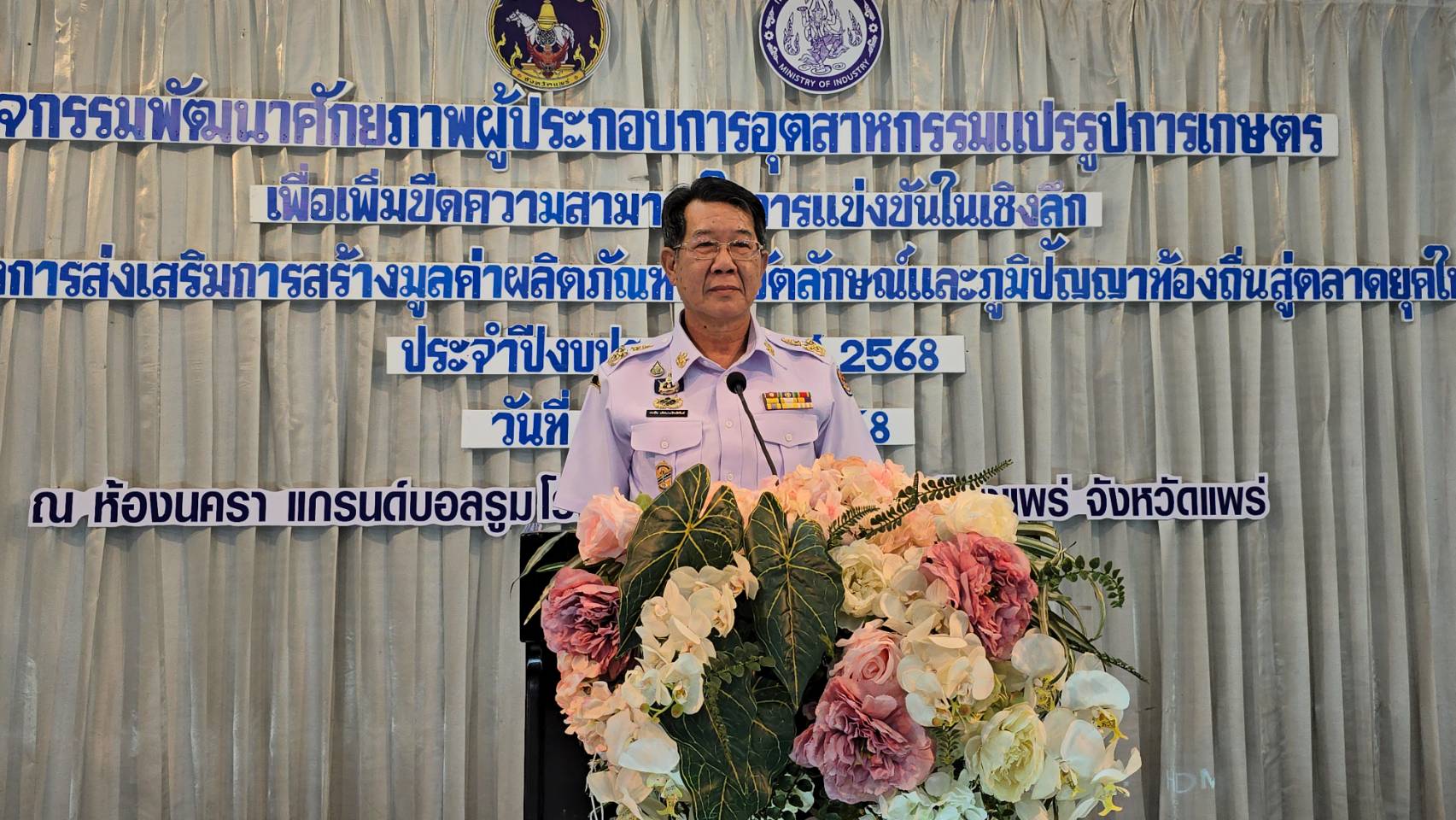 เมื่อวันที่ 8 กันยายน 2568 เวลา 13.30 น. นายสมชัย เลิศประสิทธิพันธ์ ผู้ว่าราชการจังหวัดแพร่ เป็นประธานเปิดงาน ณ โรงแรมแพร่นครา ห้องแกรนด์บอลรูม ชั้น 2 โดยมีนายประยูร ใบยา อุตสาหกรรมจังหวัดแพร่ ผู้ประกอบการ ผู้เชี่ยวชาญ และเจ้าหน้าที่ภาครัฐและเอกชนเข้าร่วมงานอย่างคับคั่ง