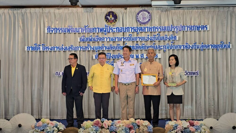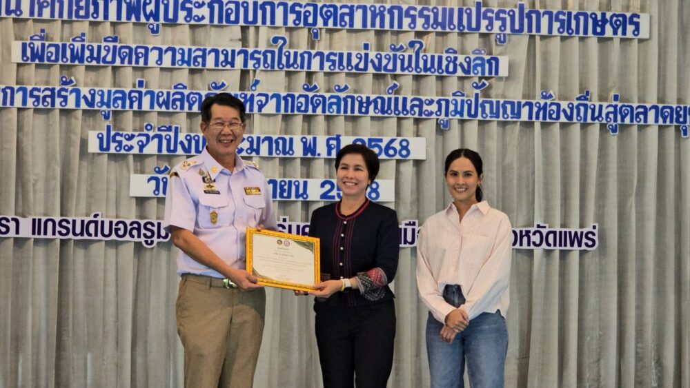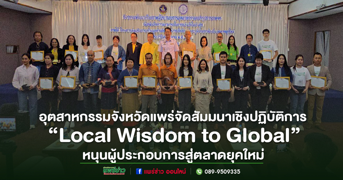 จังหวัดแพร่ โดยสำนักงานอุตสาหกรรมจังหวัดแพร่ จัดกิจกรรมสัมมนาเชิงปฏิบัติการและเสวนาแลกเปลี่ยนเรียนรู้ ภายใต้โครงการ “ส่งเสริมการสร้างมูลค่าผลิตภัณฑ์จากอัตลักษณ์และภูมิปัญญาท้องถิ่นสู่ตลาดยุคใหม่ (Local Wisdom to Global)” เพื่อพัฒนาศักยภาพผู้ประกอบการในอุตสาหกรรมแปรรูปการเกษตร ยกระดับคุณภาพผลิตภัณฑ์ และเพิ่มขีดความสามารถในการแข่งขันสู่ตลาดทั้งในและต่างประเทศ