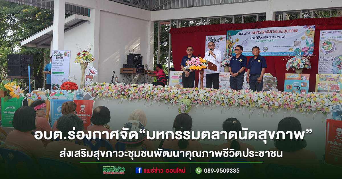 วันพฤหัสบดีที่ 11 กันยายน พ.ศ. 2568 เวลา 16.00 น. งานสาธารณสุขและสิ่งแวดล้อม สำนักปลัด องค์การบริหารส่วนตำบลร่องกาศ ได้จัดโครงการ มหกรรมตลาดนัดสุขภาพ ประจำปีงบประมาณ 2568 ณ สนามกีฬากลาง องค์การบริหารส่วนตำบลร่องกาศ อำเภอสูงเม่น จังหวัดแพร่