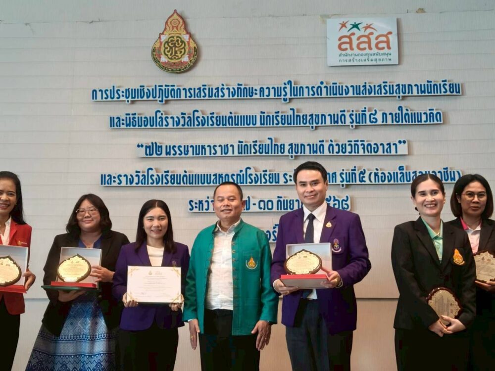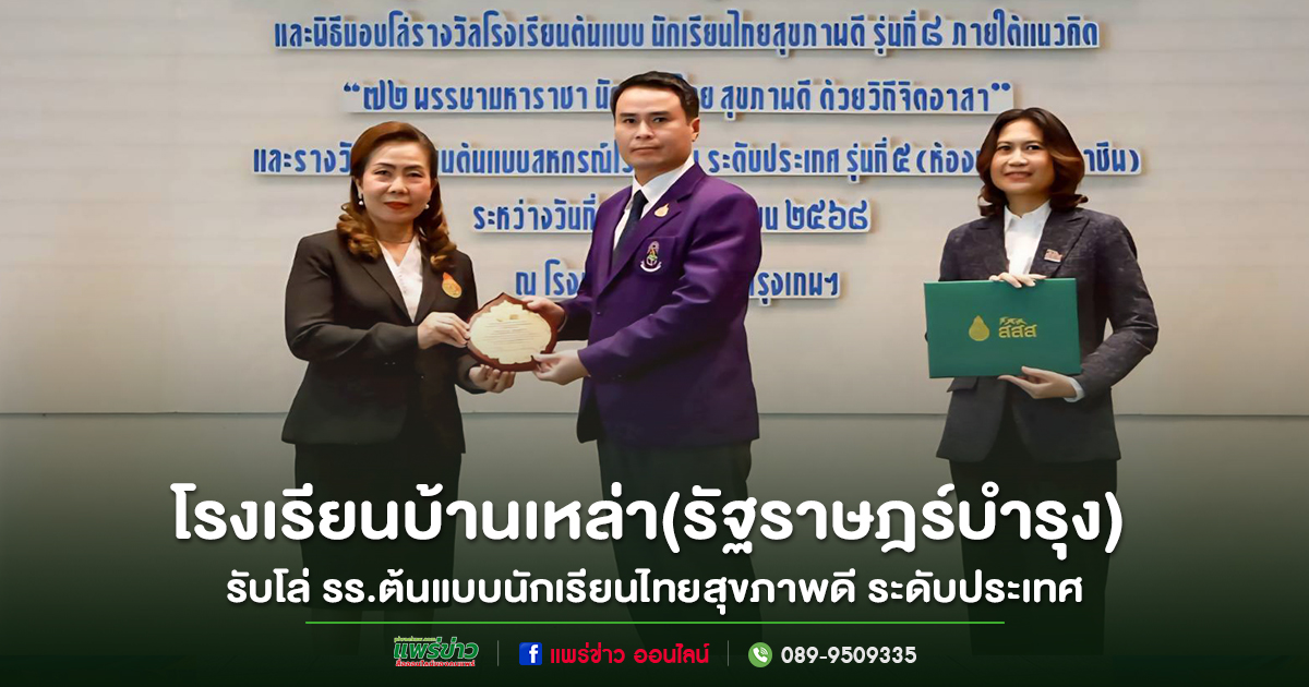 วันที่ 10 กันยายน 2568 นายเอกลักษณ์ อินกัน ผู้อำนวยการโรงเรียนบ้านเหล่า(รัฐราษฎร์บำรุง) สพป.แพร่ เขต 2 รับโล่รางวัล ในงานการประชุมเชิงปฏิบัติการเสริมสร้างทักษะความรู้ในการดำเนินงานส่งเสริมสุขภาพนักเรียน และพิธีมอบโล่รางวัลโรงเรียนต้นแบบนักเรียนไทยสุขภาพดีรุ่นที่ 8 ภายใต้แนวคิด 72 พรรษามหาราชานักเรียนไทยสุขภาพดีด้วยวิถีจิตอาสา ระดับประเทศ หว่างวันที่ 7-10 กันยายน 2568 ณ โรงแรมริเวอร์ไซด์ กรุงเทพมหานคร