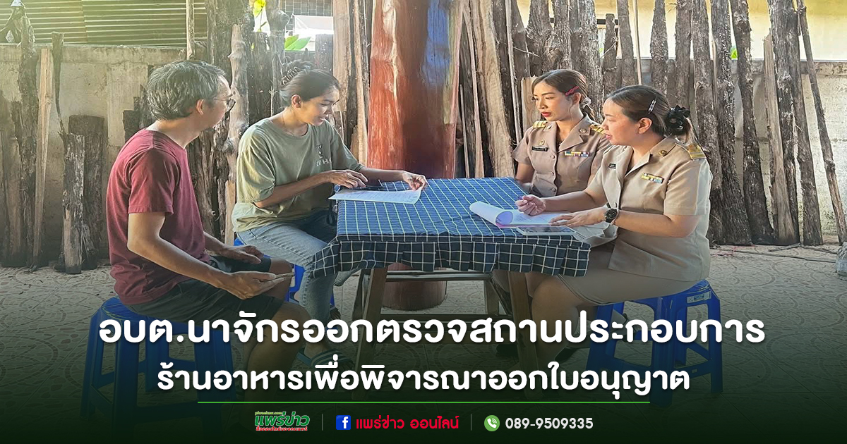 วันจันทร์ที่ 15 กันยายน 2568 นายสุนนท์ จิตใจ นายกอบต.นาจักร มอบหมายให้เจ้าหน้าที่งานสาธารณสุข ร่วมกับงานป้องกันและบรรเทาสาธารณภัย สำนักปลัด องค์การบริหารส่วนตำบลนาจักร ลงพื้นที่ตรวจสอบร้านค้าและกิจการในเขตตำบลนาจักร เพื่อประกอบการพิจารณาออกใบอนุญาตสถานที่จำหน่ายอาหารและสถานที่สะสมอาหาร ตามพระราชบัญญัติการสาธารณสุข