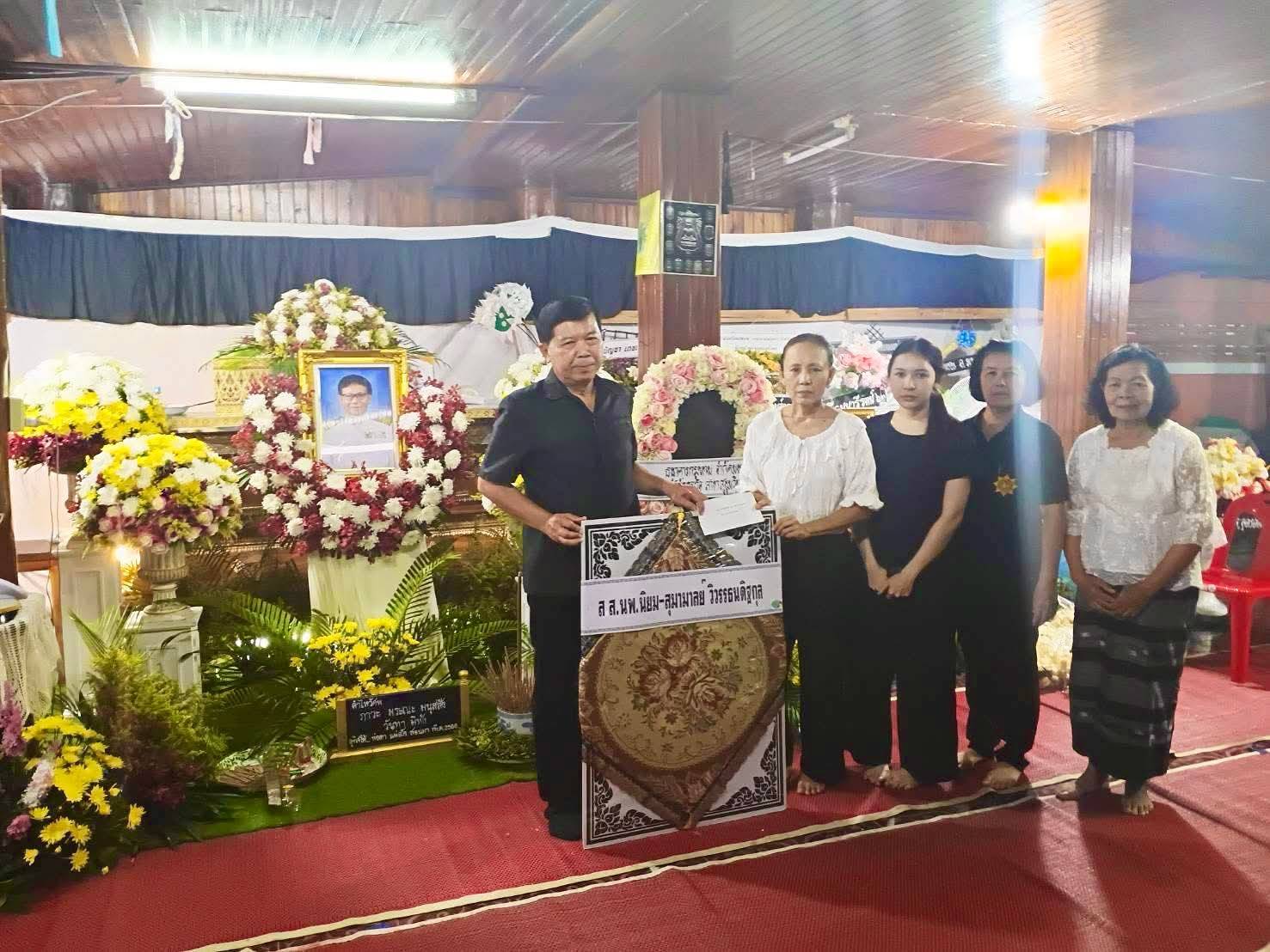 นพ.นิยม วิวรรธนดิฐกุล สมาชิกสภาผู้แทนราษฎร เขต 2 จังหวัดแพร่ เดินทางไปร่วมวางหรีดเคารพศพ นายชุมพล ขัดสม อายุ 55 ปี บ้านหมู่ 3 ตำบลวังหลวง อำเภอหนองม่วงไข่ จังหวัดแพร่ อดีตสารวัตรกำนันตำบลวังหลวงที่ถึงแก่กรรม