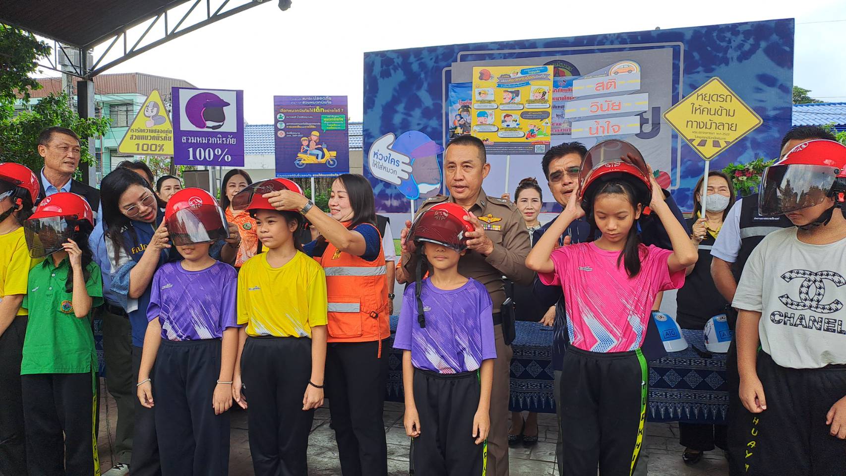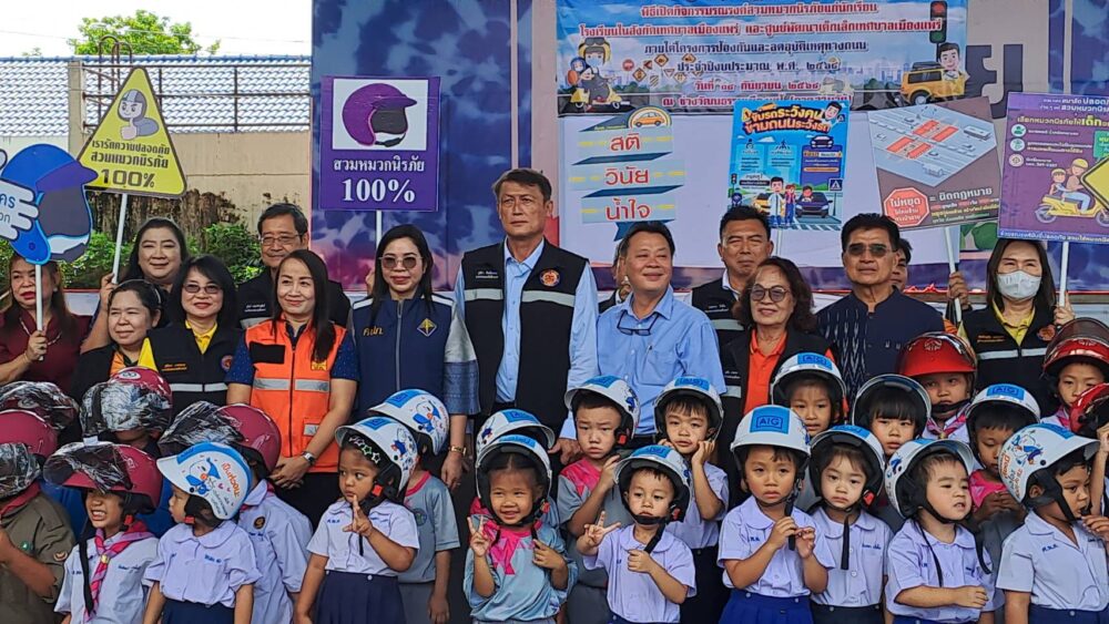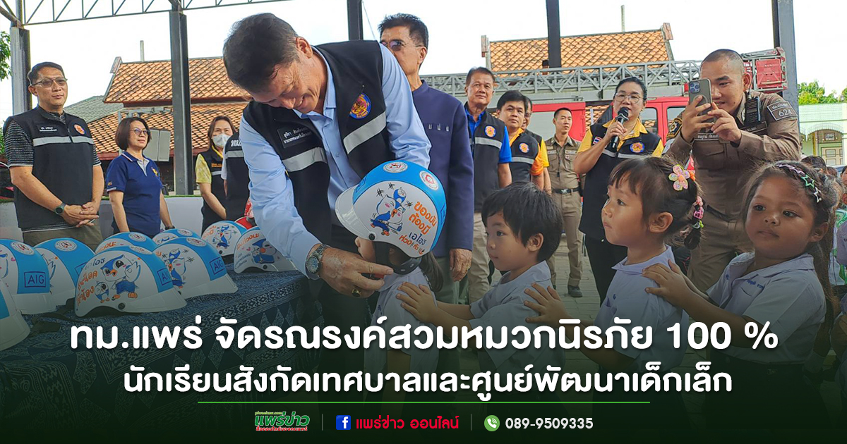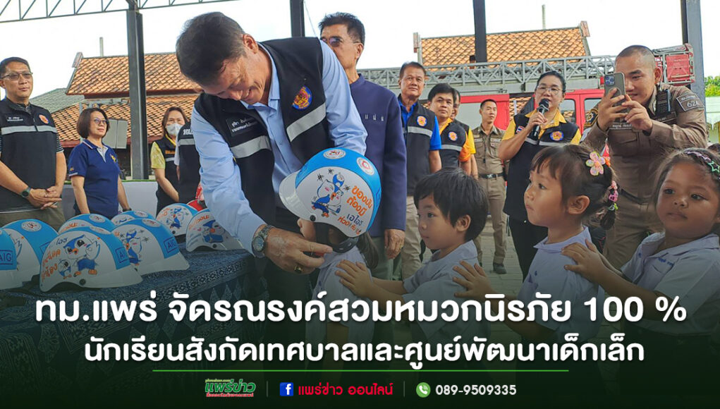 เมื่อเวลา 09.00 น. วันพฤหัสบดี ที่ 18 กันยายน 2568 ณ ข่วงวัฒนธรรมเมืองแพร่ (กาดสามวัย) จัดพิธีเปิดกิจกรรมรณรงค์สวมหมวกนิรภัย 100 % แก่นักเรียนโรงเรียนในสังกัดเทศบาลเมืองแพร่และศูนย์พัฒนาเด็กเล็ก ประจำปีงบประมาณ 2568 ภายใต้โครงการป้องกันและลดอุบัติเหตุทางถนน มีนางสาวสุพัตรา มาดหมาย รองปลัดเทศบาลเมืองแพร่ กล่าวรายงานวัตถุประสงค์การจัดกิจกรรม โดยมีนายสุริยา อินต๊ะนอน นายกเทศมนตรีเมืองแพร่ ประธานกล่าวเปิดงาน พร้อมคณะผู้บริหารเทศบาลเมืองแพร่ และส่วนราชการ ร่วมด้วย สำนักงานคณะกรรมการกำกับและส่งเสริมการประกอบธุรกิจประกันภัยจังหวัดแพร่ บริษัท เอไอเอ จำกัด รวมทั้งคณะครูและนักเรียนในสังกัดเทศบาลเมืองแพร่ ร่วมรณรงค์ในการสวมหมวกนิรภัย 100 % ในครั้งนี้