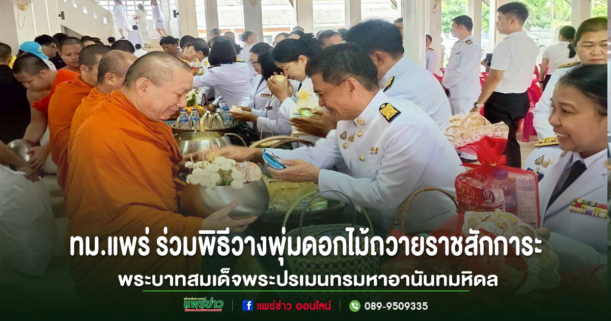 เทศบาลเมืองแพร่ ร่วมพิธีวางพุ่มดอกไม้ถวายราชสักการะ พระบาทสมเด็จพระปรเมนทรมหาอานันทมหิดล พระอัฐมรามาธิบดินทร เนื่องในโอกาสวันคล้ายวันพระบรมราชสมภพครบ 100 ปี