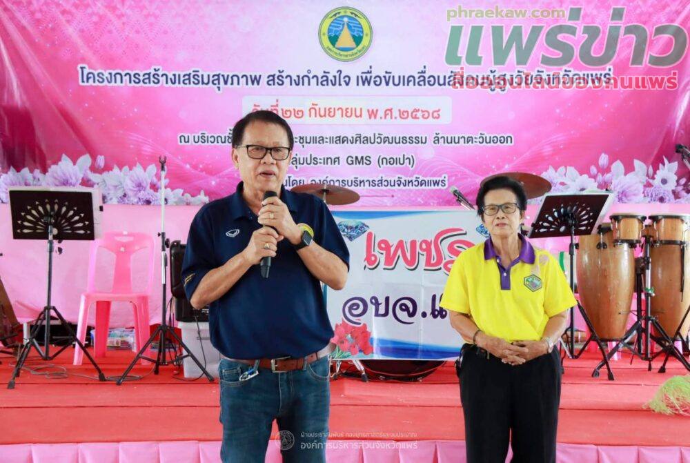 วันที่ 22 กันยายน 2568 นายอนุวัธ วงศ์วรรณ นายกองค์การบริหารส่วนจังหวัดแพร่ มอบหมายให้ นายวิตติ แสงสุพรรณ รองนายกองค์การบริหารส่วนจังหวัดแพร่ เป็นประธานพิธีเปิดโครงการสร้างเสริมสุขภาพ สร้างกำลังใจ เพื่อขับเคลื่อนสังคมผู้สูงวัยจังหวัดแพร่ รุ่นที่ 26 (รุ่นสุดท้ายประจำปีงบประมาณ 2568) ณ ศูนย์ประชุมและแสดงศิลปวัฒนธรรมล้านนาตะวันออกและกลุ่มประเทศ GMS ทั้งนี้ มีผู้สูงอายุจากตำบลร่องกาศ อำเภอสูงเม่น จำนวน 100 คน เข้าร่วมโครงการ