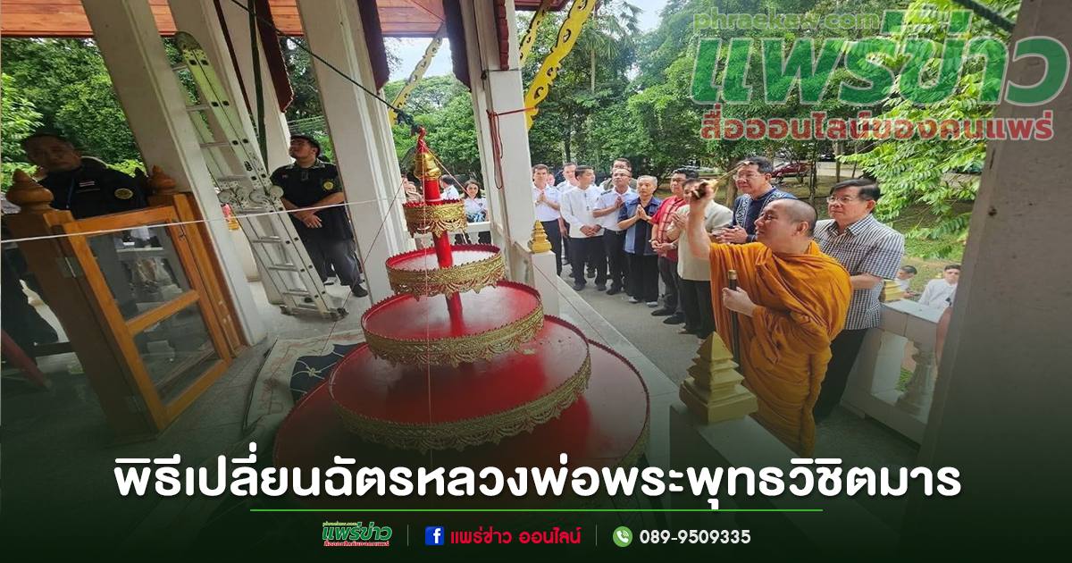 วันที่ 23 กันยายน 2563 เวลา 09.00 น.นายสน ลือวัฒนานนท์ รองนายกเทศมนตรีเมืองแพร่ เข้าร่วม พิธีเปลี่ยนฉัตรหลวงพ่อพระพุทธวิชิตมาร ประทานสันติสุขสวัสดี ชินสีห์ธรรมบพิตร ณ สถาบันนวัตกรรมด้านป่าไม้ จังหวัดแพร่