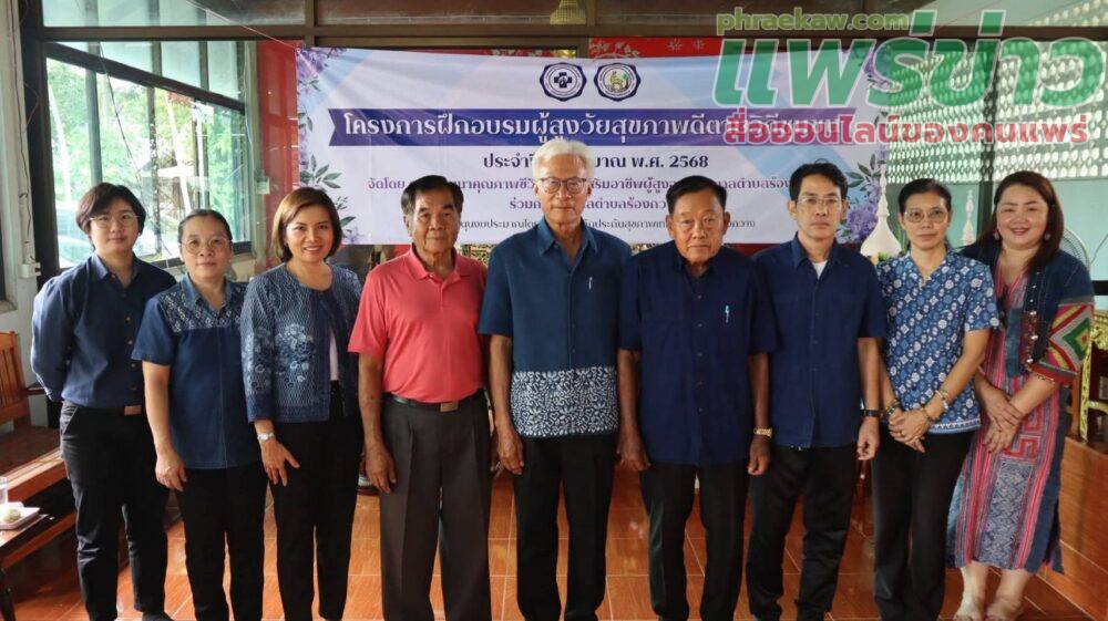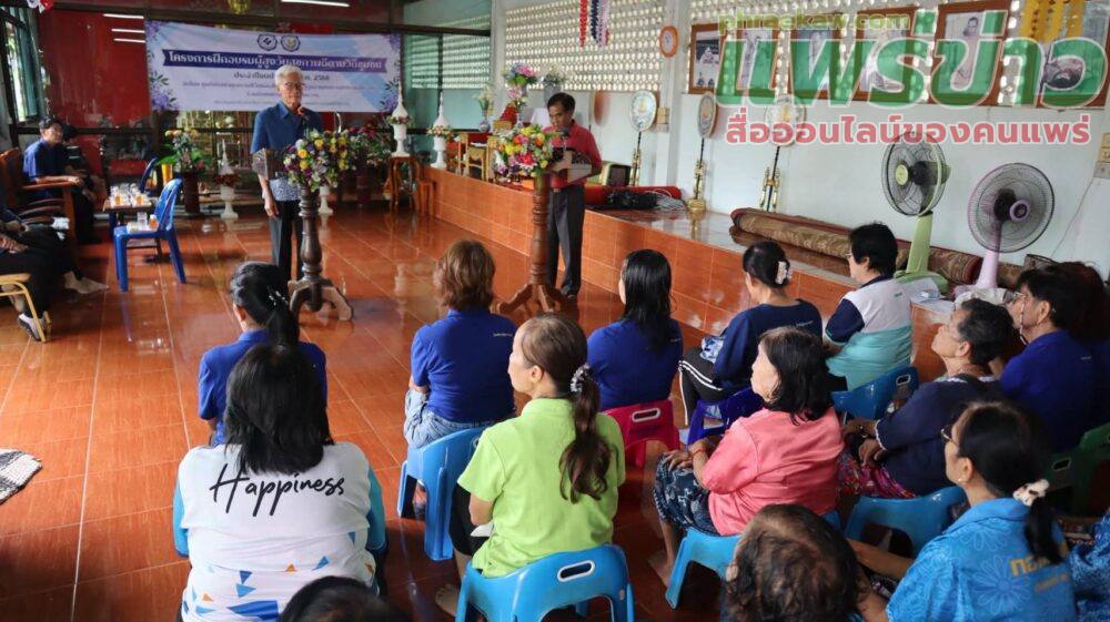 วันศุกร์ที่ 26 กันยายน 2568 เวลา 09.00 น. นายพิพัฒน์ ซื่อทรงธรรม นายกเทศมนตรีตำบลร้องกวาง มอบหมายให้นายอัศวิน วรรณจรรยา รองนายกเทศมนตรี เป็นประธานในพิธีเปิดโครงการฝึกอบรมผู้สูงวัยสุขภาพดีตามวิถีชุมชน ประจำปีงบประมาณ พ.ศ. 2568 ตำบลทุ่งศรี โดยมีนายบัญญัติ อุ่นกรอง ประธานศูนย์พัฒนาคุณภาพชีวิตและส่งเสริมอาชีพผู้สูงอายุเทศบาลตำบลร้องกวาง ได้กล่าวรายงานวัตถุประสงค์ของการจัดงาน และนางสาวรุ่งอรุณ วันจา รองปลัดเทศบาล รักษาราชการแทนปลัดเทศบาลตำบลร้องกวาง ได้ร่วมพบปะกลุ่มผู้สูงอายุตำบลทุ่งศรี พร้อมทั้งประชาสัมพันธ์การบริหารจัดการและการเตรียมความพร้อมการดำเนินงานโรงเรียนผู้สูงอายุเทศบาลตำบลร้องกวาง เพื่อส่งเสริมคุณภาพชีวิต การเรียนรู้ตลอดชีวิต และการพัฒนาตนเองของผู้สูงอายุ เพื่อเสริมสร้างสุขภาพกายใจให้แข็งแรง ส่งเสริมการมีส่วนร่วมและสร้างประโยชน์แก่ชุมชน ส่งเสริมการสืบสานภูมิปัญญาและวัฒนธรรม รวมถึงการดูแลสิทธิและความเป็นอยู่ของผู้สูงอายุให้มีความสุขในสังคม