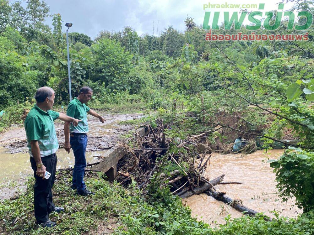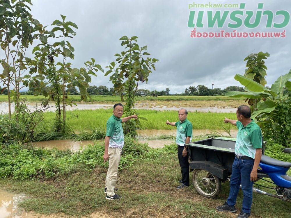 ได้ลงพื้นที่สำรวจสถานการณ์น้ำท่วมขังในพื้นที่ไร่นา รวมถึงอ่างเก็บน้ำห้วยร่องผา และห้วยแพน ตำบลเวียงทอง อำเภอสูงเม่น จังหวัดแพร่