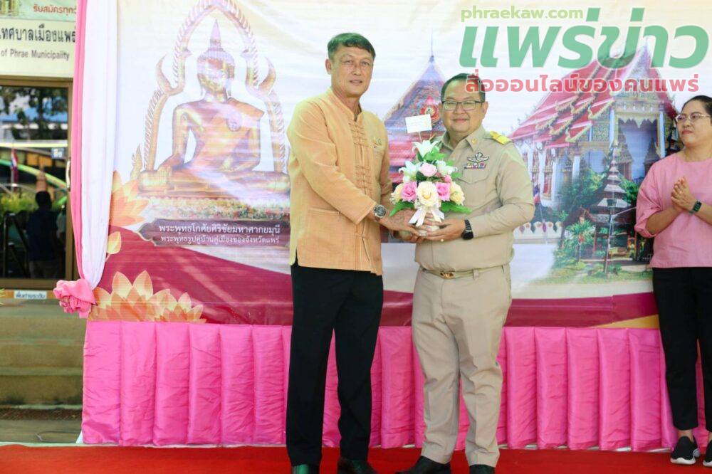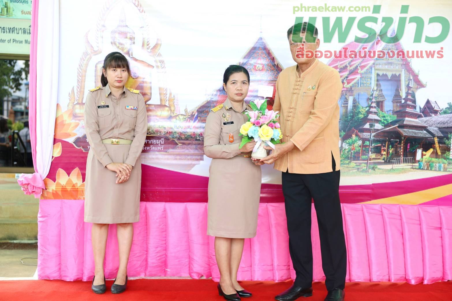ในการนี้มี นายเจตนิพิฐ หล้าประเสริฐ ปลัดเทศบาลเมืองแพร่ นางสาวสุพัตรา มาดหมาย รองปลัดเทศบาลเมืองแพร่ พร้อมด้วยหัวหน้าส่วนราชการ และพนักงานเทศบาล ร่วมให้การต้อนรับอย่างอบอุ่น ณ ลานอเนกประสงค์ กองสวัสดิการสังคม เทศบาลเมืองแพร่