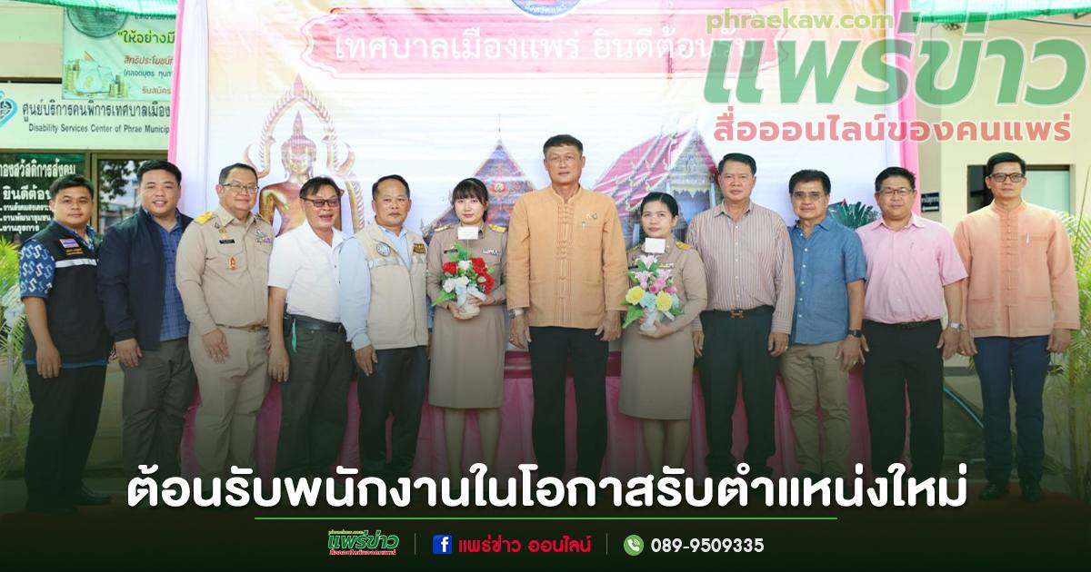 วันที่ 2 ตุลาคม 2568 เวลา 10.00 น. นายสุริยา อินต๊ะนอน นายกเทศมนตรีเมืองแพร่ กล่าวแสดงความยินดีและให้การต้อนรับพนักงานเทศบาลที่เข้ารับตำแหน่งใหม่ ได้แก่ นางสาวนุชศรา จาอาบาล หัวหน้าสำนักปลัดเทศบาล (นักบริหารงานทั่วไป ระดับกลาง) นายศรีมงคล ศักดิ์วัฒนกำจร ผู้อำนวยการกองช่าง (นักบริหารงานช่าง ระดับกลาง)นางสาวพวงรัตน์ คมคง นักวิชาการศึกษาชำนาญการ กองการศึกษา