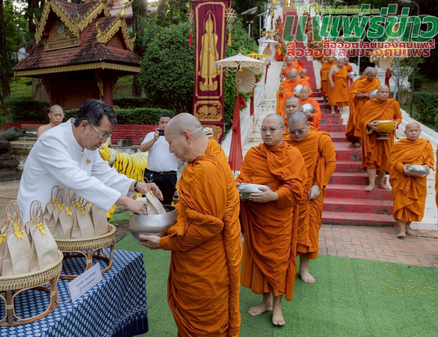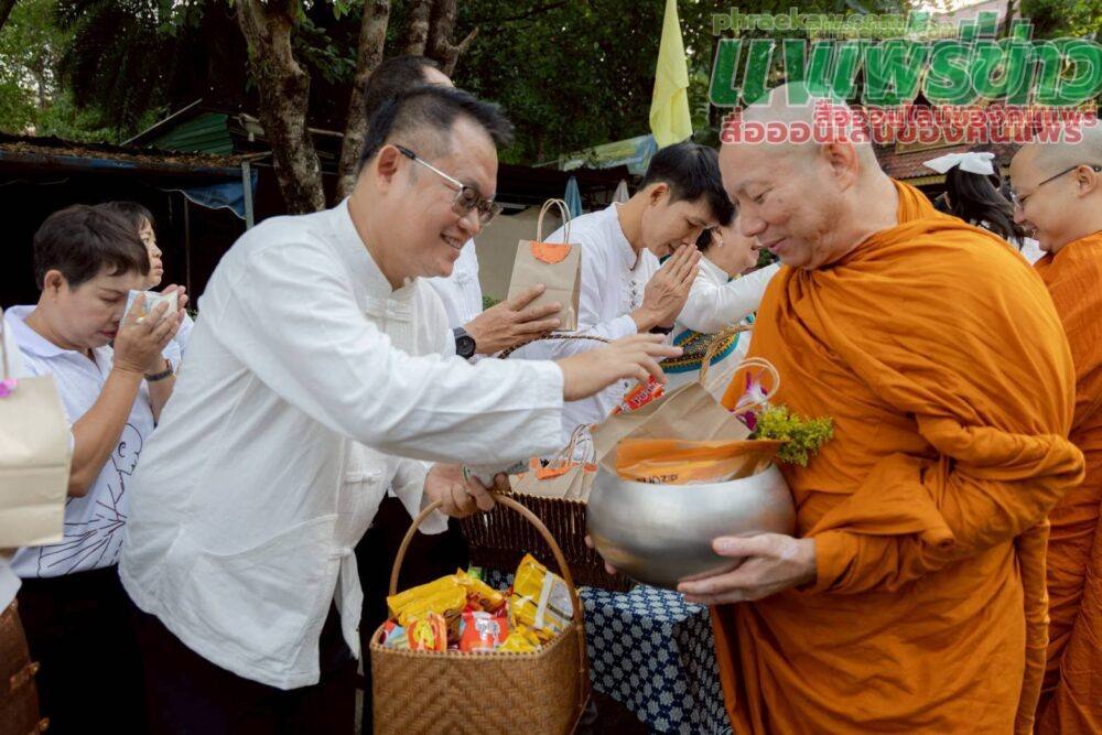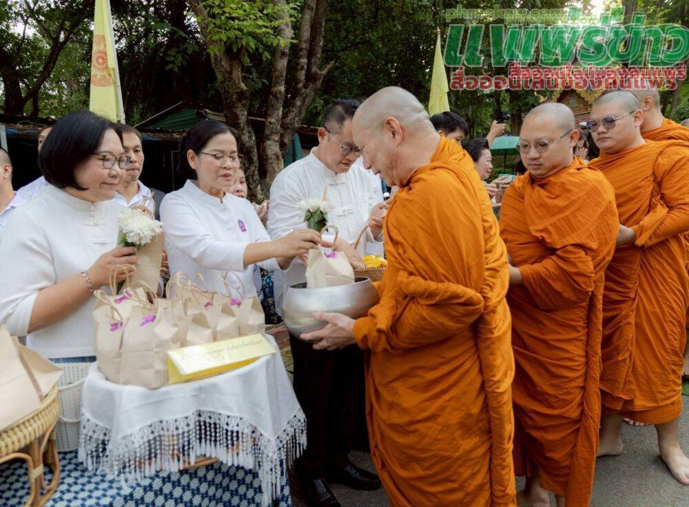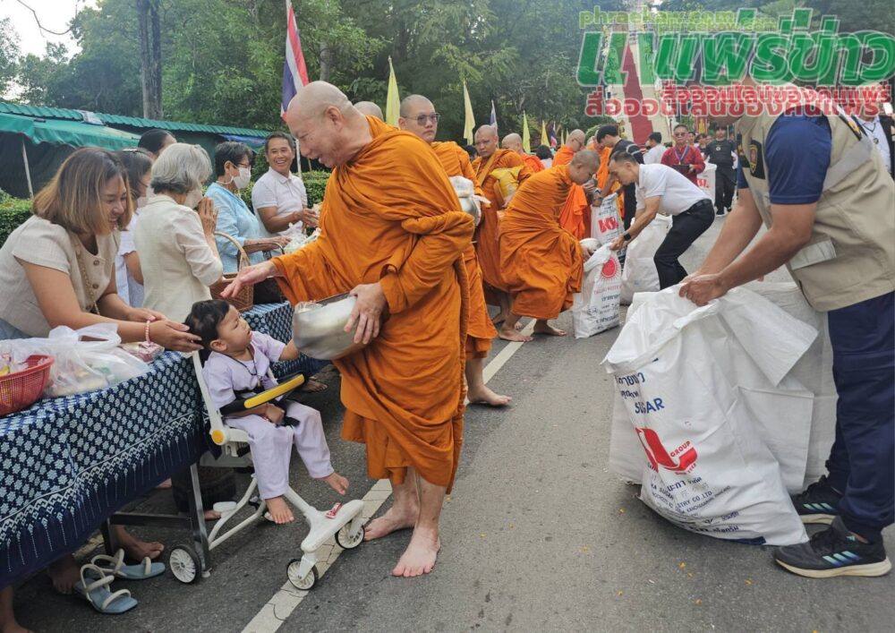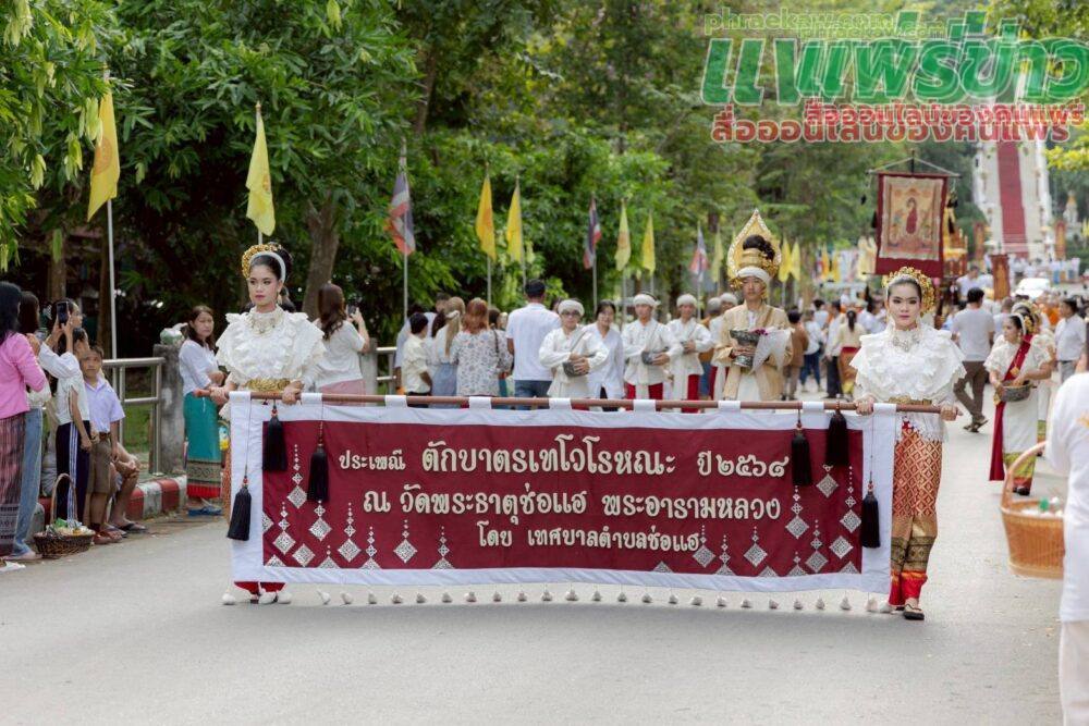 เมื่อเวลา 06.30 น. วันที่ 8 ตุลาคม 2568 ที่วัดพระธาตุช่อแฮ พระอารามหลวง ต.ช่อแฮ อ.เมืองแพร่ จ.แพร่ พระโกศัยเจติยารักษ์ รองเจ้าคณะจังหวัดแพร่ เจ้าอาวาสวัดพระธาตุช่อแฮ พระอารามหลวง เป็นประธานฝ่ายสงฆ์ พร้อมด้วย นายสมชัย เลิศประสิทธิพันธ์ ผวจ.แพร่ นำพุทธศาสนิกชนชาวแพร่ทุกหมู่เหล่า ร่วมสืบสานประเพณี “ตักบาตรเทโวโรหณะ” ประจำปี 2568 หรือที่เรียกสั้น ๆ ว่า ตักบาตรเทโว โดยมีหัวหน้าส่วนราชการ ข้าราชการ และประชาชนจำนวนมากมาร่วมทำบุญตักบาตร