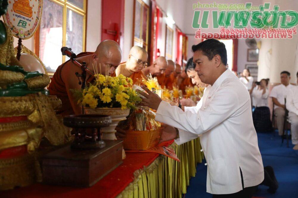 ในการนี้ นายสุริยา อินต๊ะนอน นายกเทศมนตรีเมืองแพร่ ได้นำคณะผู้บริหาร สมาชิกสภาเทศบาล หัวหน้าส่วนราชการ พนักงานเทศบาล และพุทธศาสนิกชนร่วมประกอบพิธี ณ พระอุโบสถวัดชัยมงคล ตำบลในเวียง อำเภอเมืองแพร่ จังหวัดแพร่