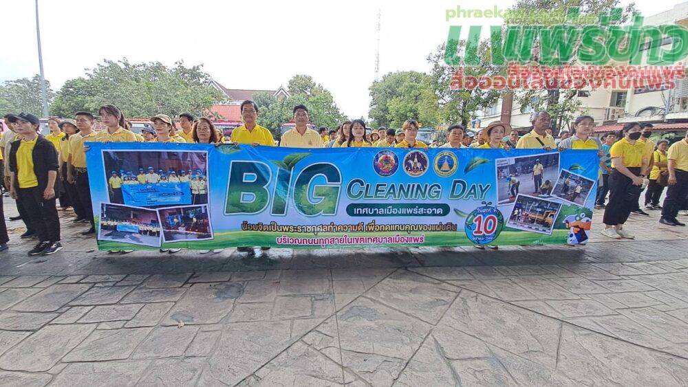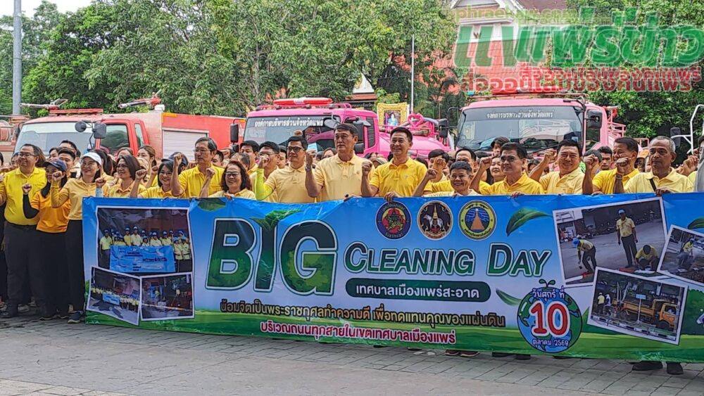 เมื่อเวลา 08.00 น. วันที่ 10 ต.ค.68 นายสุริยา อินต๊ะนอน นายกเทศมนตรีเมืองแพร่ เป็นประธานเปิด กิจกรรมทำความสะอาดเมือง (Big Cleaning Day) เทศบาลเมืองแพร่สะอาด เพื่อถวายเป็นพระราชกุศลพระบาทสมเด็จพระบรมชนกาธิเบศ มหาภูมิพล อดุลยเดชมหาราช บรมนาถบพิตร เนื่องในคล้ายวันสวรรคต (13 ตุลาคม 2568) น้อมจิตเป็นพระราชกุศลทำความดี เพื่อทดแทนคุณ โดยมี นายเจตนิพิฐ หล้าประเสริฐ ปลัดเทศบาลเมืองแพร่ กล่าวรายงาน โดยมีคณะผู้บริหารฯ ประธานสภาฯ สมาชิกสภาฯ หัวหน้าส่วนราชการ และพนักงานเทศบาล พนักงานจ้างเทศบาลเมือวงแพร่ ประธานชุมชน คณะ อสม.ทุกท่านเข้าร่วมพิธีอย่างพร้อมเพรียง