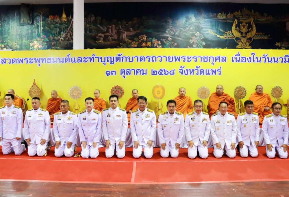 วันที่ 13 ตุลาคม 2568 นายอนุวัธ วงศ์วรรณ นายกองค์การบริหารส่วนจังหวัดแพร่ พร้อมด้วย นางสาวปาริชาติ หิรัญรัตน์ รองปลัดองค์การบริหารส่วนจังหวัด รักษาราชการแทนปลัดองค์การบริหารส่วนจังหวัดแพร่ และเจ้าหน้าที่ องค์การบริหารส่วนจังหวัดแพร่ ร่วมพิธีทำบุญตักบาตรถวายพระราชกุศล และพิธีวางพวงมาลา เนื่องในวันนวมินทรมหาราช 13 ตุลาคม 2568