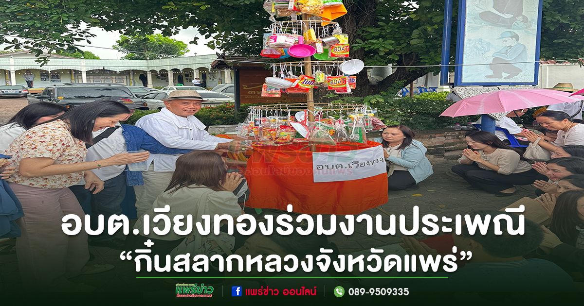 วันที่ 15 ตุลาคม 2568 เวลา 13.30 น. องค์การบริหารส่วนตำบลเวียงทอง นำโดย นายจำเริญ จินดาเสน รองนายกองค์การบริหารส่วนตำบลเวียงทอง พร้อมด้วย นายสมยศ ยอดสอน รองปลัดองค์การบริหารส่วนตำบลเวียงทอง และพนักงานองค์การบริหารส่วนตำบลเวียงทอง ร่วมงานประเพณี “กิ๋นสลากหลวงจังหวัดแพร่” ประจำปี 2568 และร่วมทำบุญถวายต้นสลากภัตร อบต.เวียงทอง เพื่อสืบสานวัฒนธรรมประเพณีที่ดีงามของท้องถิ่น ส่งเสริมกิจกรรมทางพระพุทธศาสนา รวมทั้งรักษาประเพณีล้านนาและวัฒนธรรมไทย เปิดโอกาสให้คนเมืองแพร่ได้ร่วมทำบุญถวายสลาก การกิ๋นสลากหลวงเมืองแพร่ จึงจัดขึ้นเป็นประจำทุกปีจนถึงปัจจุบัน ณ วัดพระบาทมิ่งเมืองวรวิหาร ตำบลในเวียง อำเภอเมืองแพร่ จังหวัดแพร่