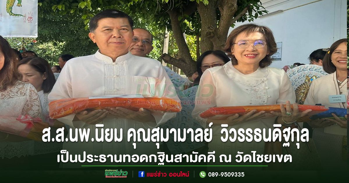 วันอาทิตย์ที่ 19 ตุลาคม 2568นพ.นิยม วิวรรธนดิฐกุล สมาชิกสภาผู้แทนราษฎรจังหวัดแพร่ เขต 2 พรรคเพื่อไทย เป็นประธานในพิธี ทอดกฐินสามัคคี ประจำปี 2568 ณ วัดไชยเขต ตำบลแม่จั๊วะ อำเภอเด่นชัย จังหวัดแพร่
