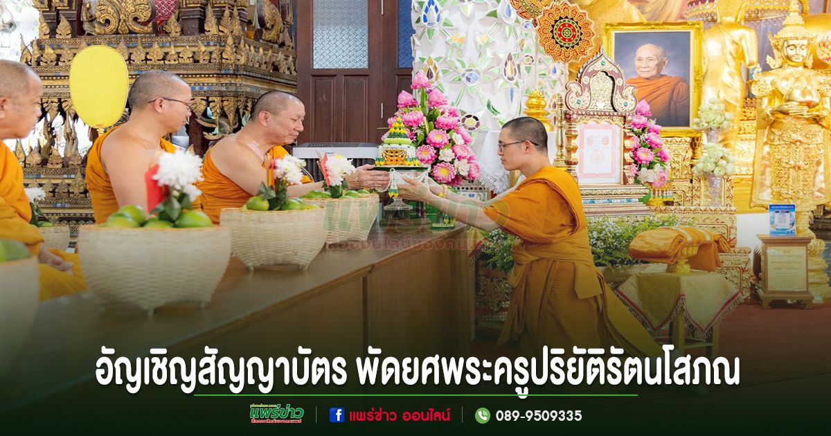 โดยขบวนอัญเชิญสัญญาบัตร พัดยศพระครูปริยัติรัตนโสภณ จากวัดพระธาตุช่อแฮ พระอารามหลวงสู่วัดป่าไร่หลวง อ.วังชิ้น จ.แพร่ และวันที่ 20 ตุลาคม 2568 จะเป็นพิธีอ่านพระบรมราชโองการ ประกาศสัญญาบัตรแต่งตั้ง พิธีสงฆ์และพุทธศาสนิกชนถวายเครื่องสักการะ
