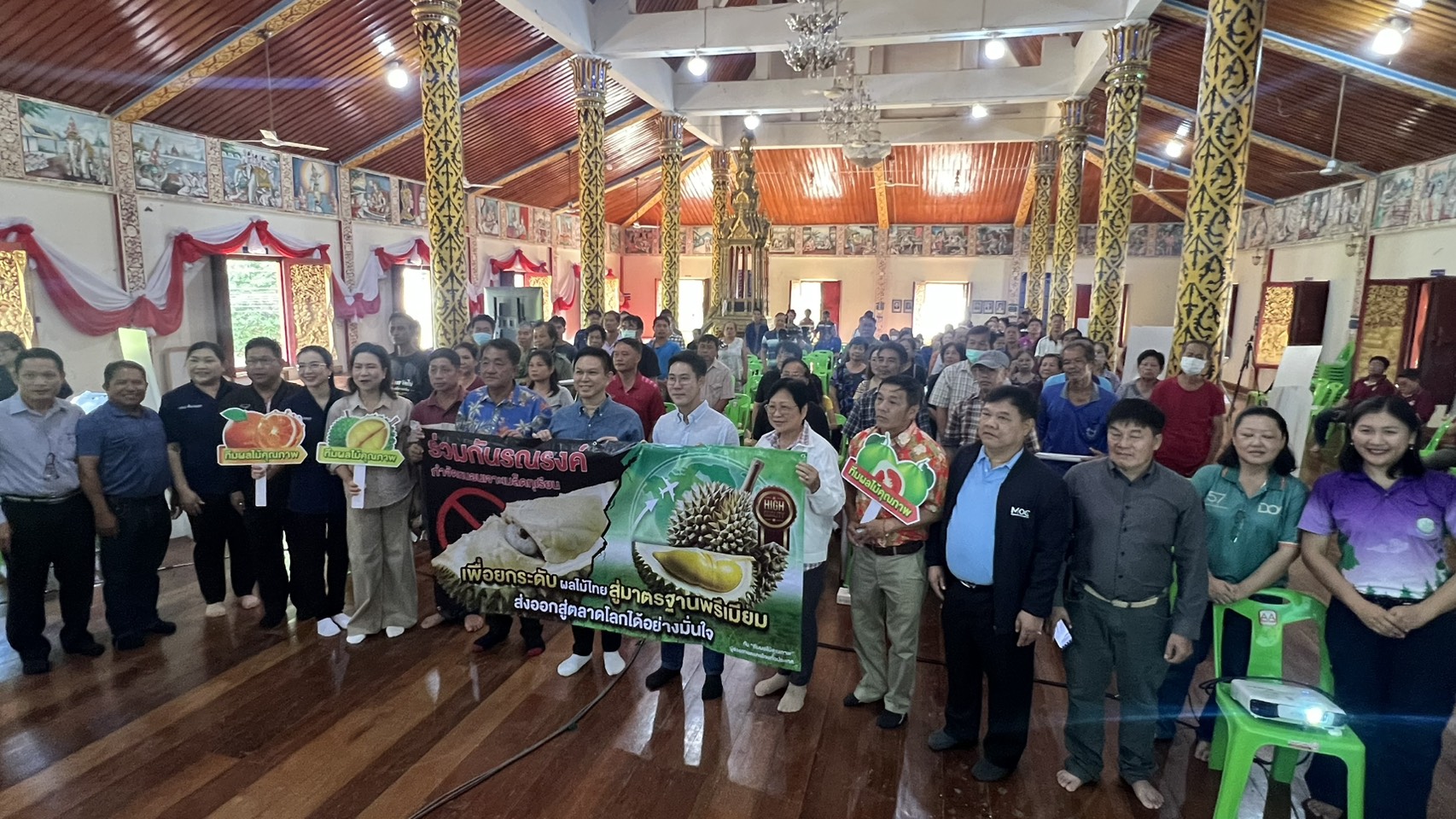 นายวรวัจน์ เอื้ออภิญญกุล ส.ส.จังหวัดแพร่ พรรคเพื่อไทย กล่าวถึงความสำคัญของการยกระดับคุณภาพทุเรียนไทย ว่า“ทุเรียนเป็นราชาแห่งผลไม้และเป็นสินค้าส่งออกสำคัญของประเทศ โดยเฉพาะตลาดจีน แต่หลายปีที่ผ่านมาทุเรียนไทยจำนวนมากถูกลดการนำเข้าเพราะปัญหาคุณภาพจากหนอนเจาะเมล็ดทุเรียน ทำให้เกษตรกรแต่ละคนสูญรายได้ปีละหลายแสนบาท ดังนั้นจำเป็นต้องร่วมมือกันยกระดับมาตรฐานการผลิตให้ปลอดโรคและแมลงอย่างเข้มแข็งตั้งแต่แปลงปลูกจนถึงมือผู้บริโภค”ภายใต้แบรนด์ผลไม้คุณภาพ